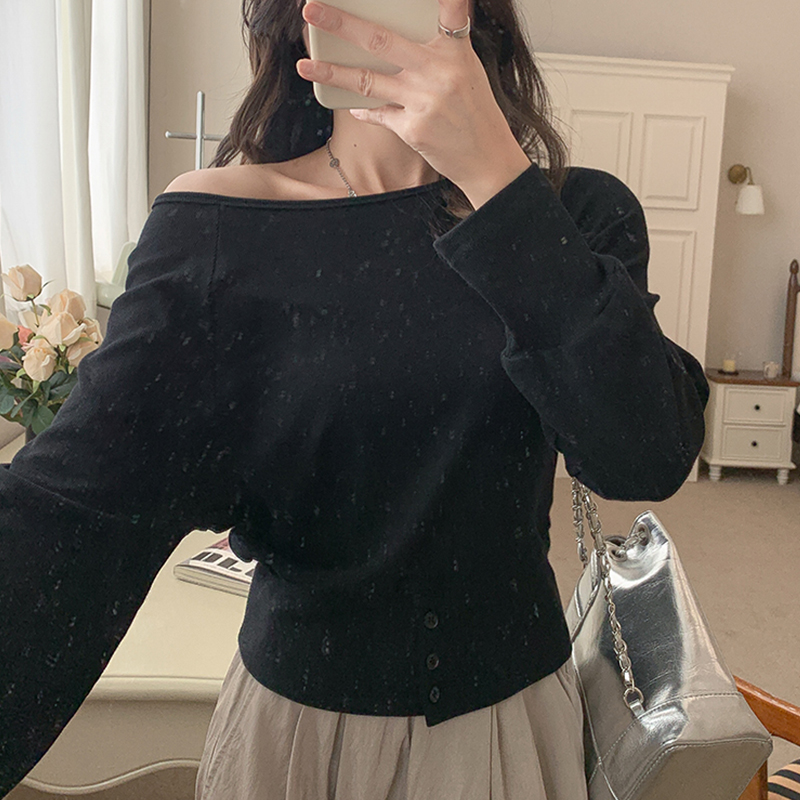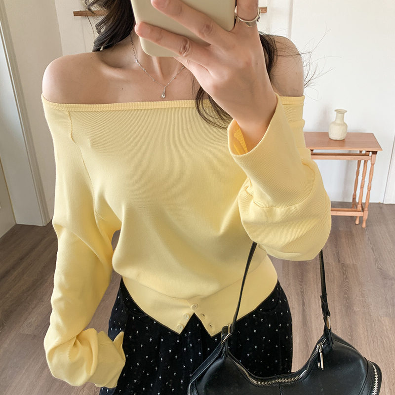 2025 년 봄 여성을위한 실제 가격 원선 어깨 탑 새로운 디자인 슬림 기질 오프 숄더 긴팔 티셔츠