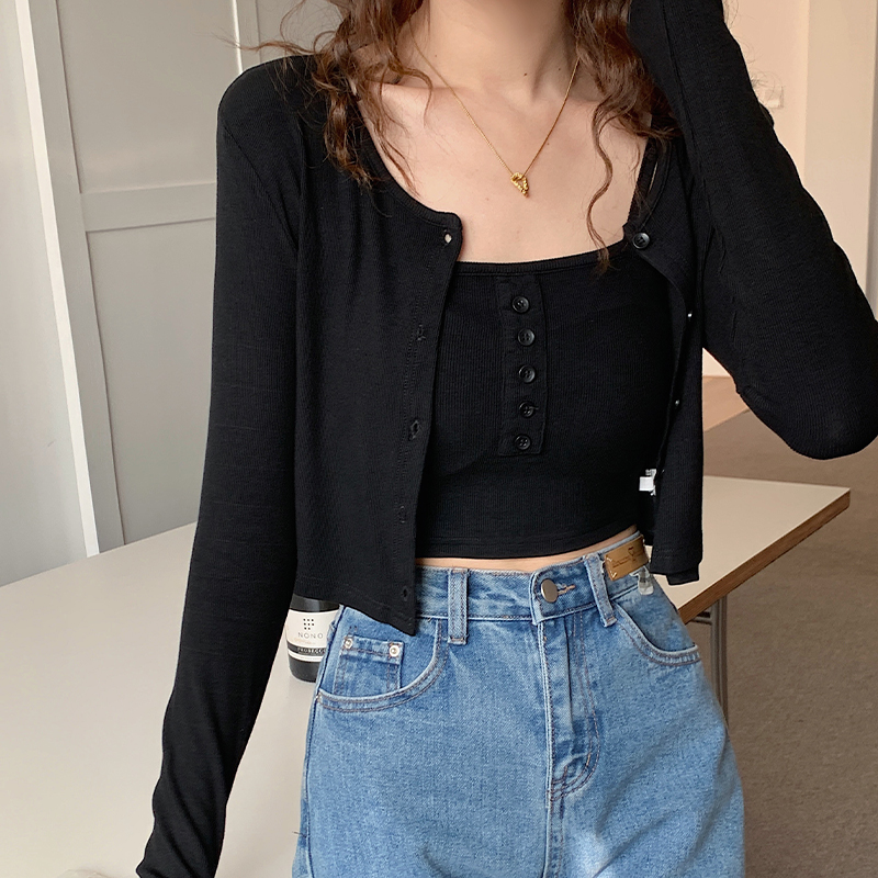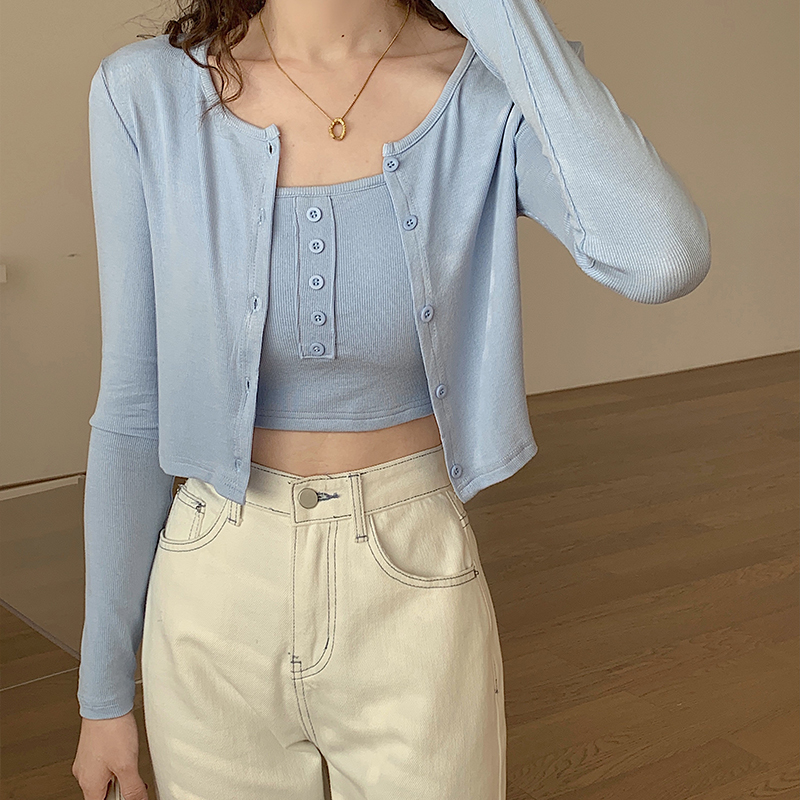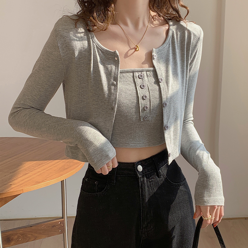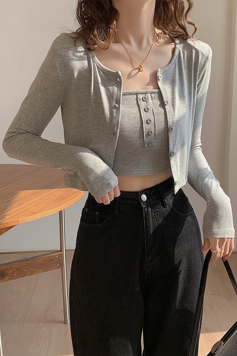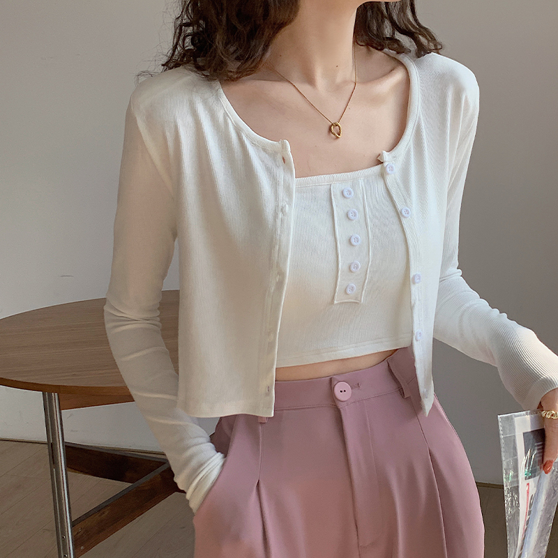 실제 가격#스레드 선 스크린 여성용 긴팔 티셔츠 2025 Spring New Surpender 2 피스 짧은 어깨 패드 탑