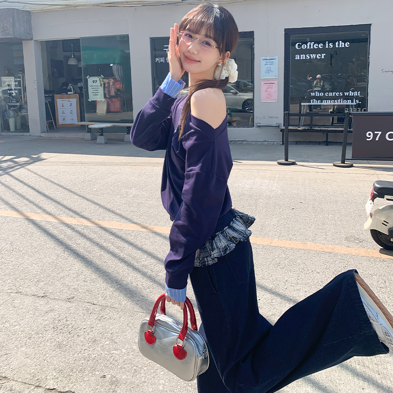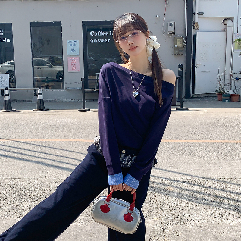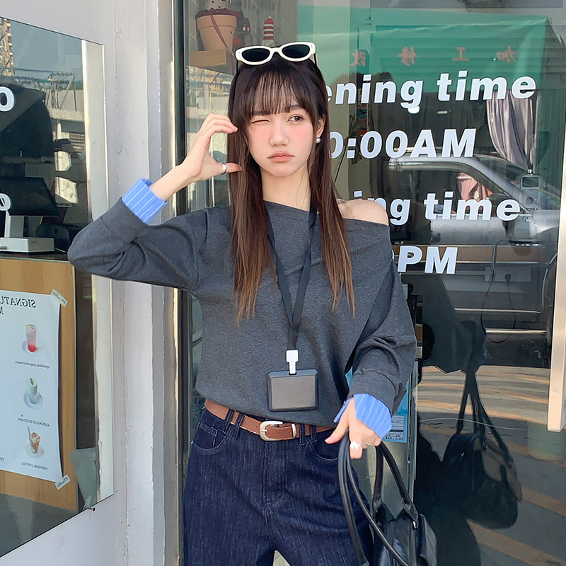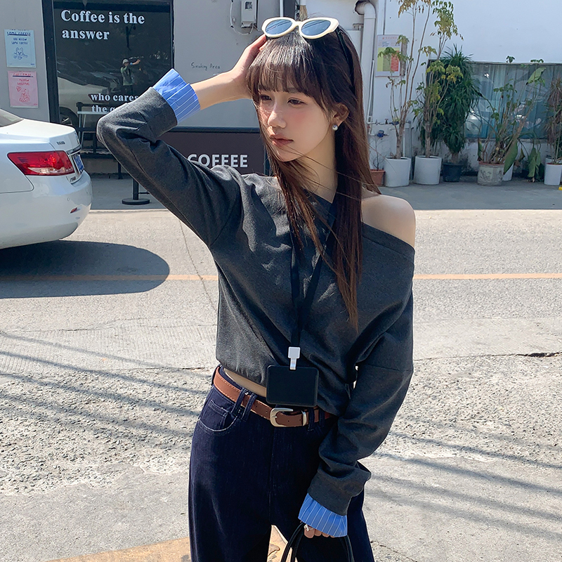 실제 가격#여성용 봄 옷을위한 긴팔 티셔츠 새로운 섹시한 오프 숄더 One Shoulder 탑 셔츠 셔츠 여성을위한