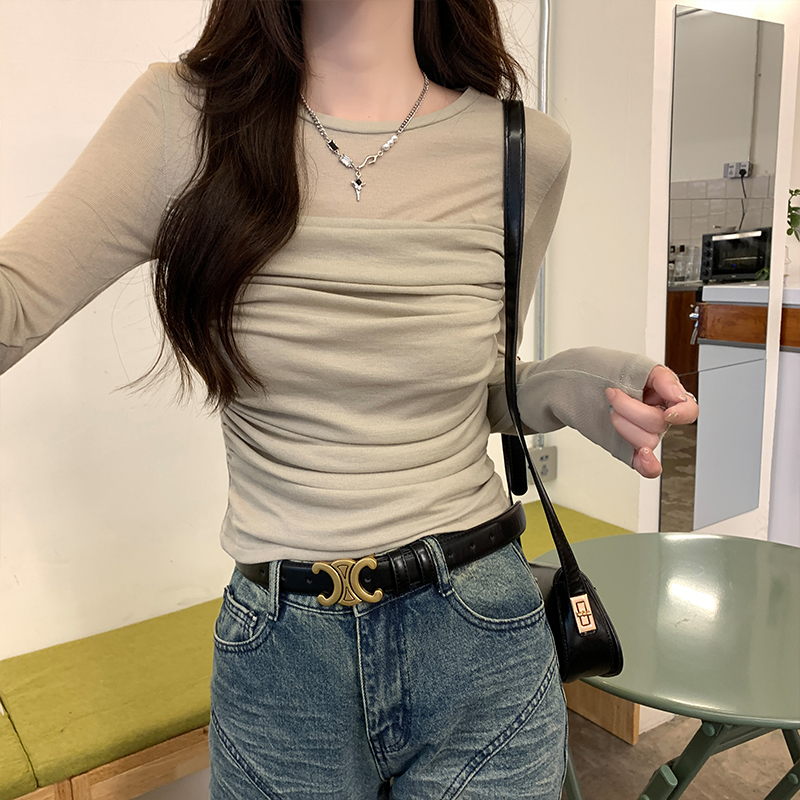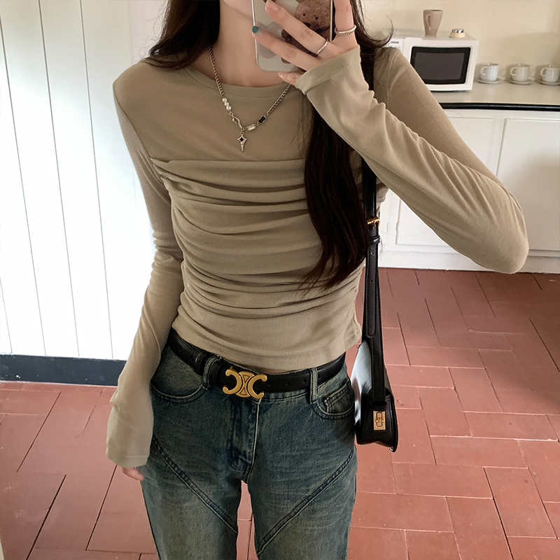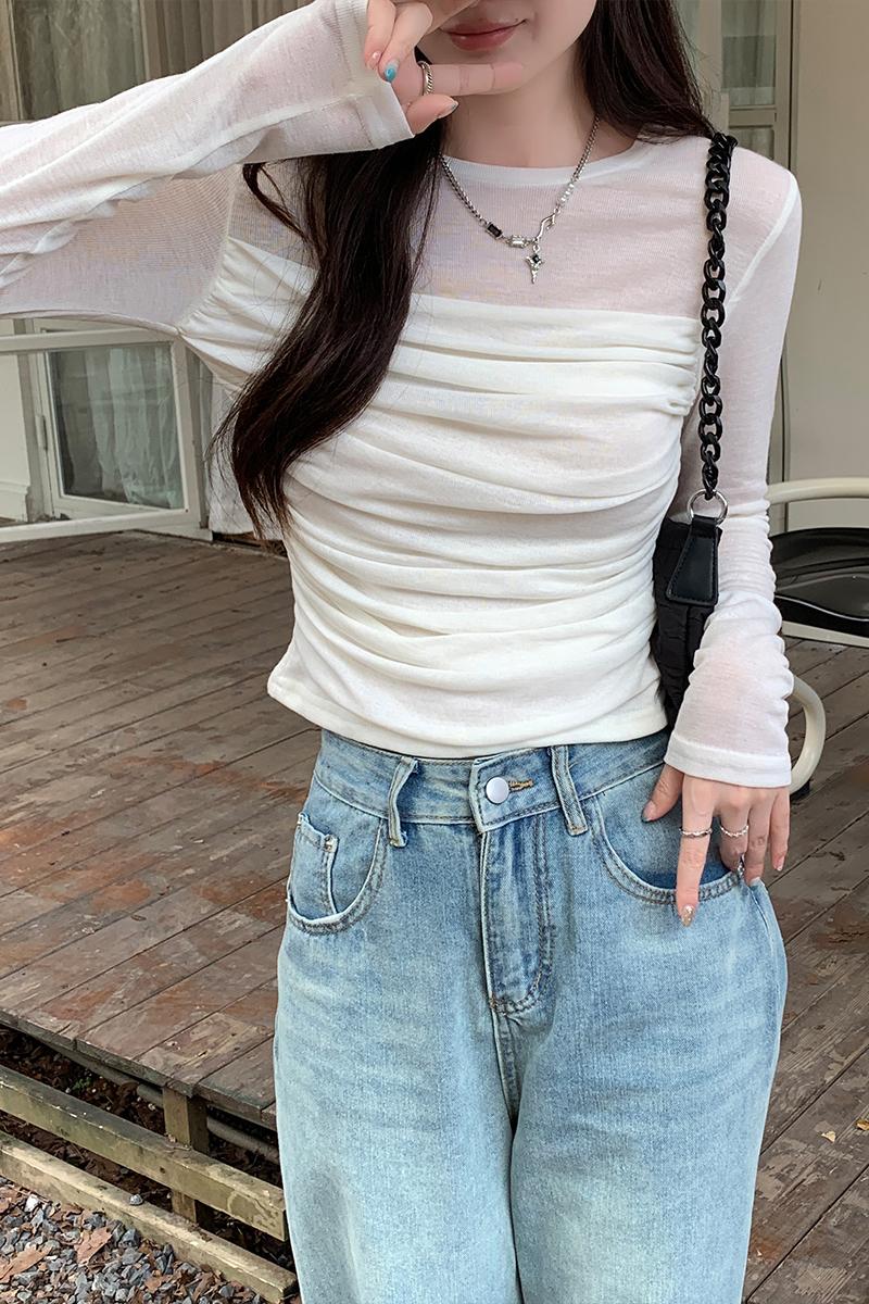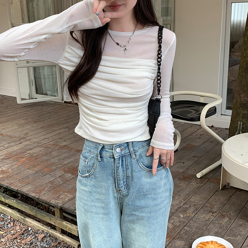 실제 가격 메쉬 긴팔 티셔츠 여성을위한 봄 2025 년 봄 2025 년 새로운 디자인 틈새 슬림 한 슬림 핏 짧은 탑