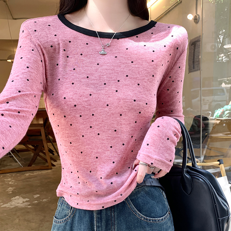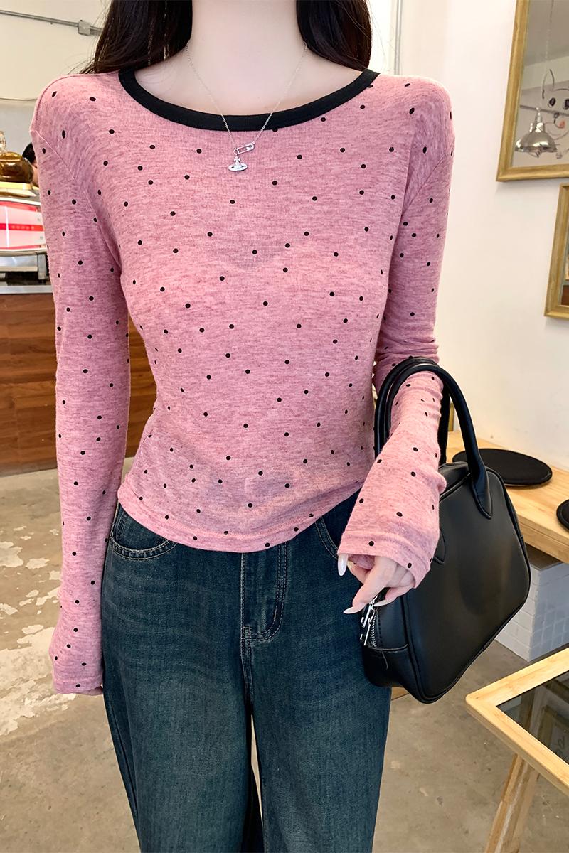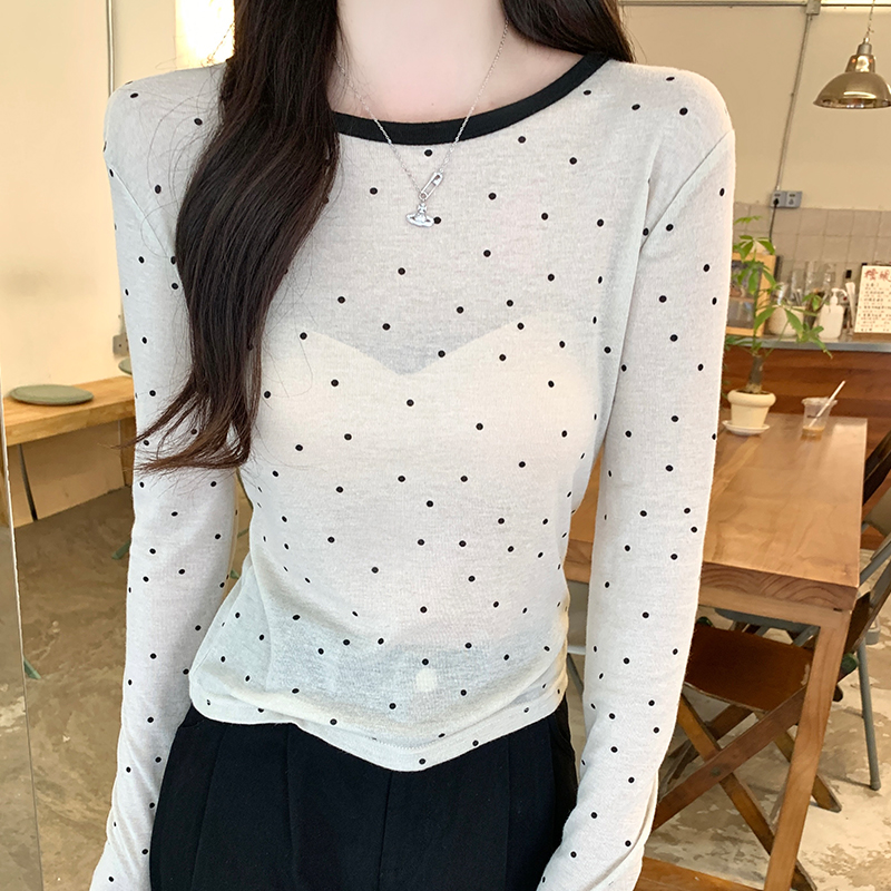 실제 샷 및 실제 가격#폴카 도트 봄 디자인 슬림 어깨 티셔츠 독특한 슈퍼 아름다운 탑