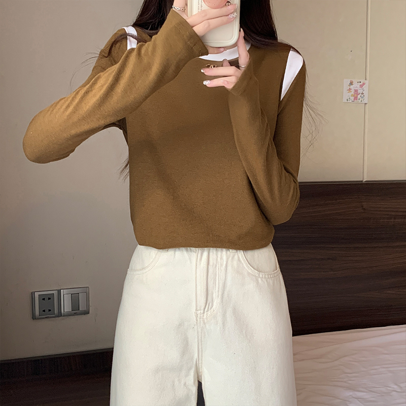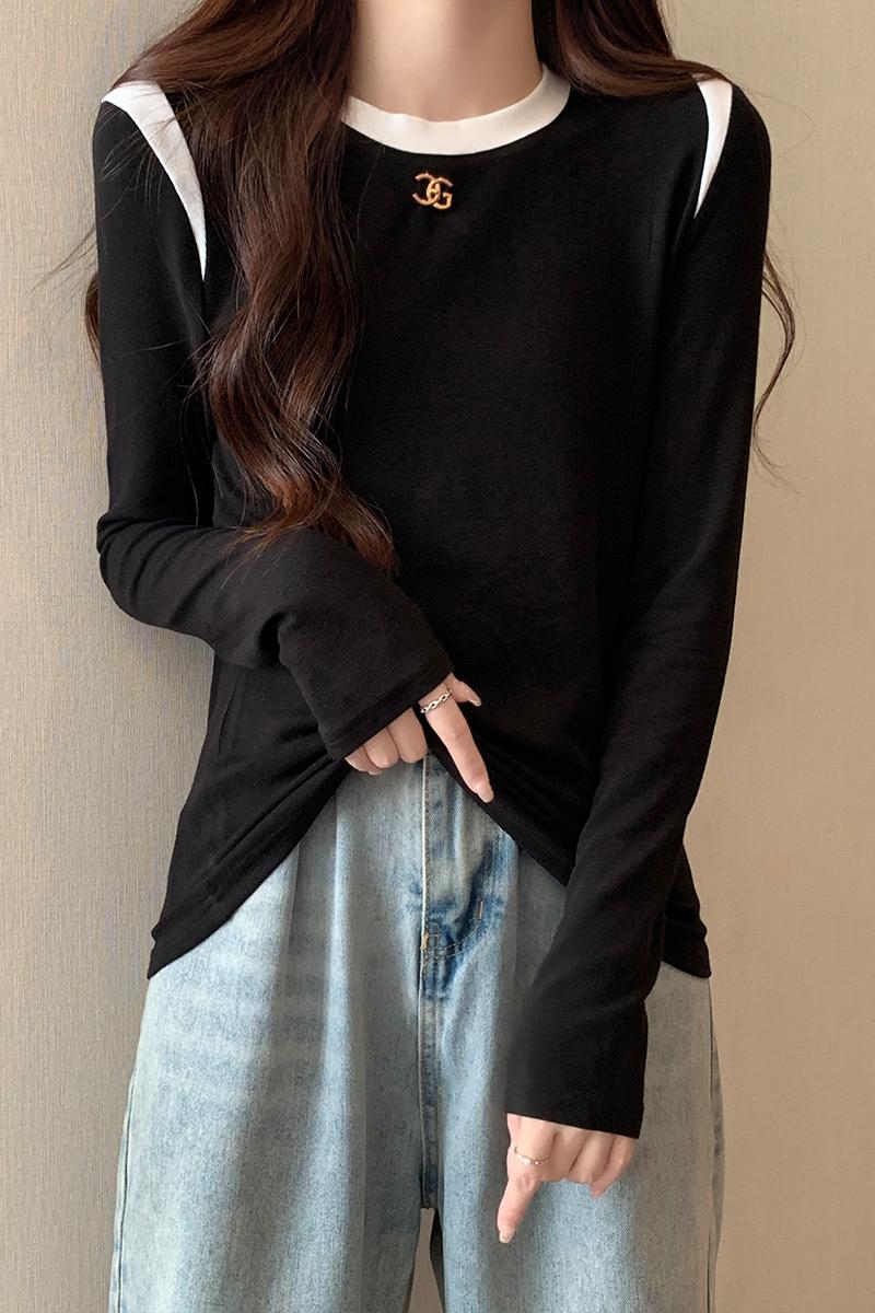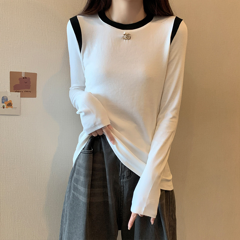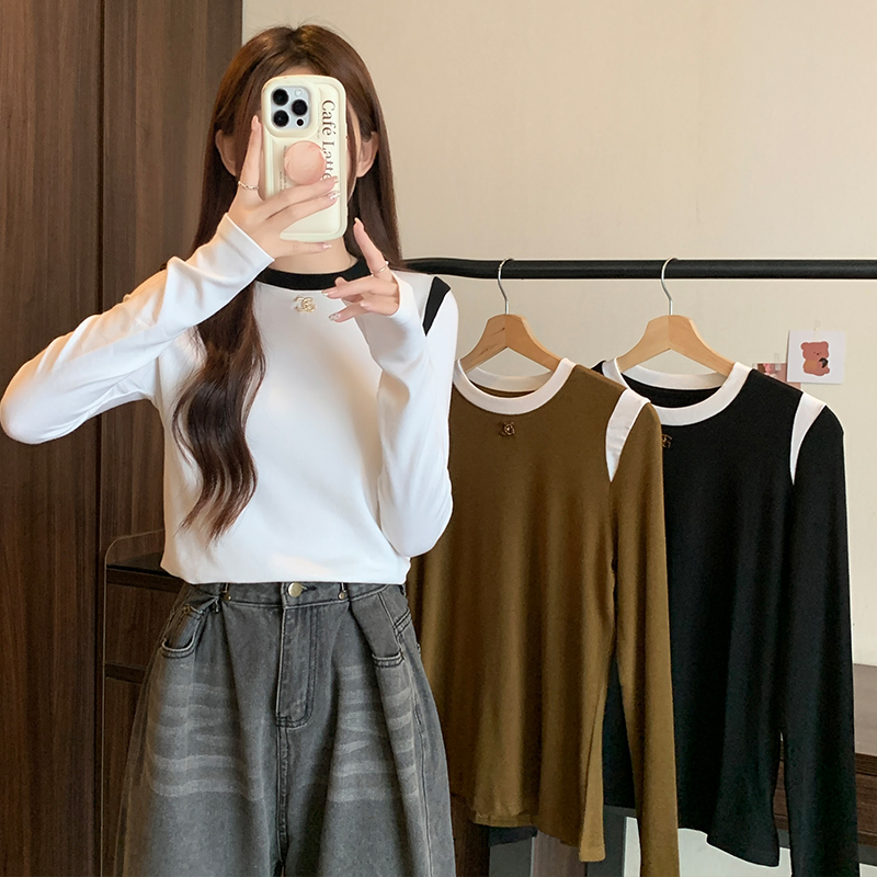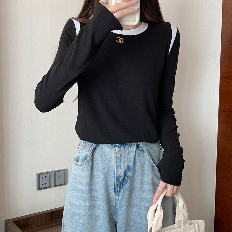 실제 사진 및 가격#전면 어깨 어깨 긴팔 티셔츠 이른 봄에 여성을위한 여성을위한 긴팔 티셔츠 New Design New Design Niche Base Shirt Undwear Top