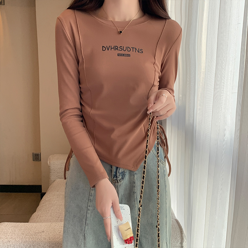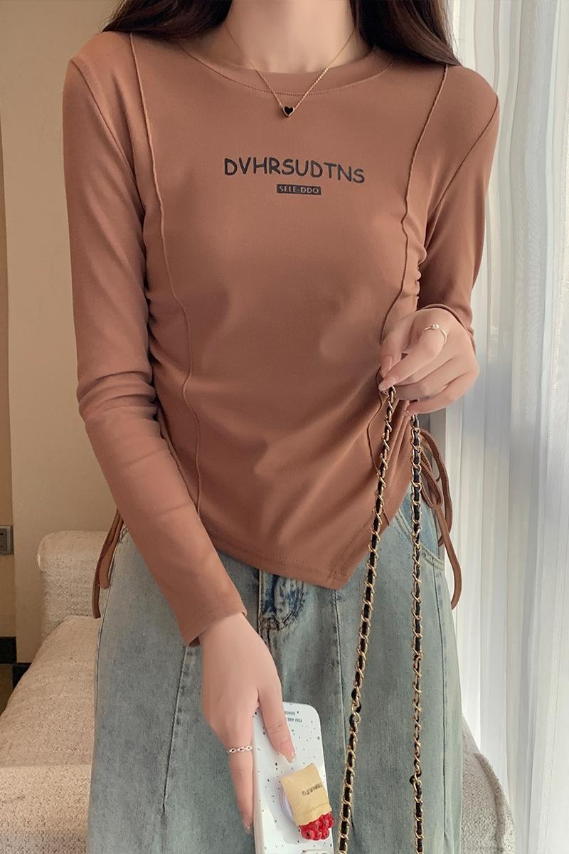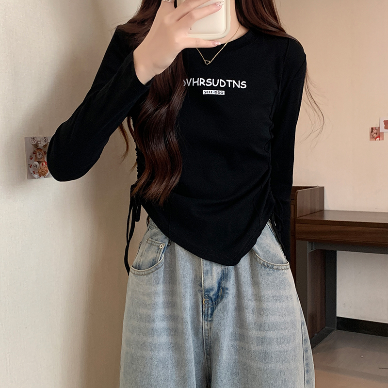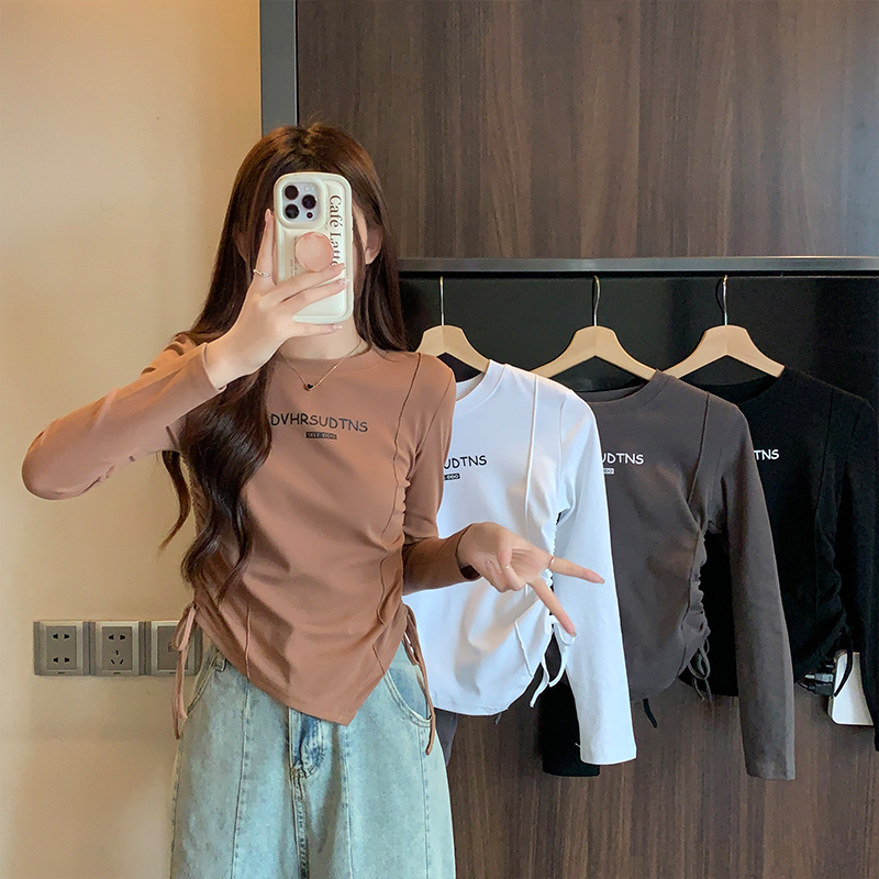 실제 샷과 실제 가격#여성용 긴팔 티셔츠 2025 New Autumn Sweet and Spicy Style Design 틈새 시장을위한 짧은 드로우 스트링 탑