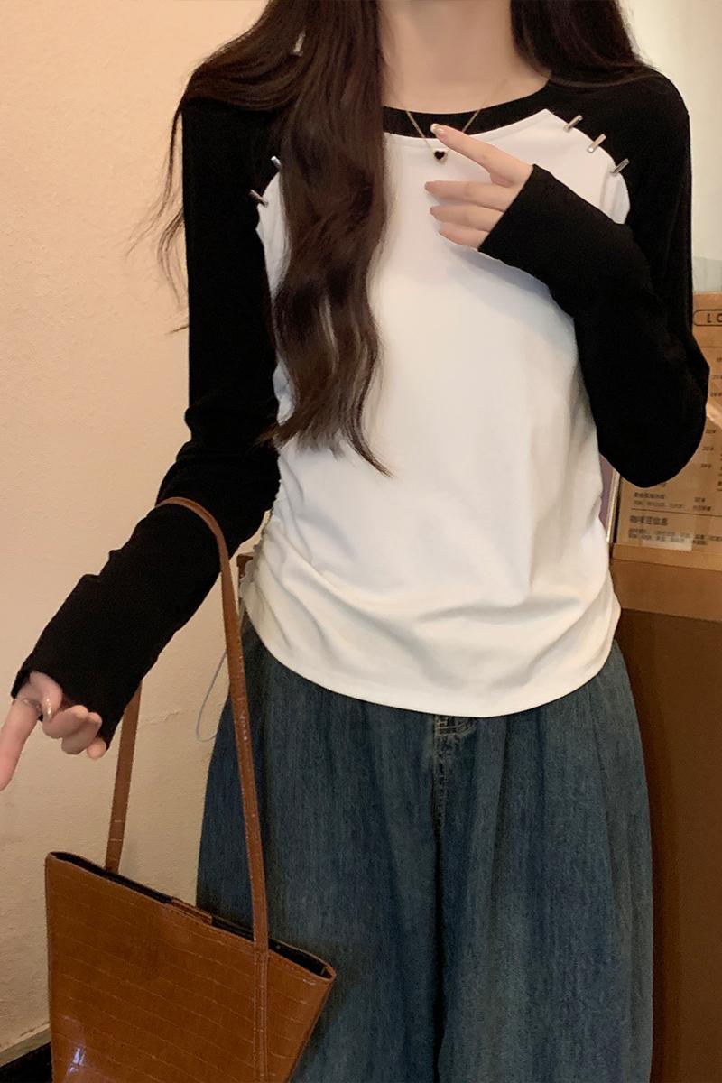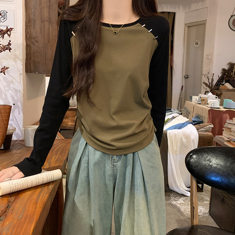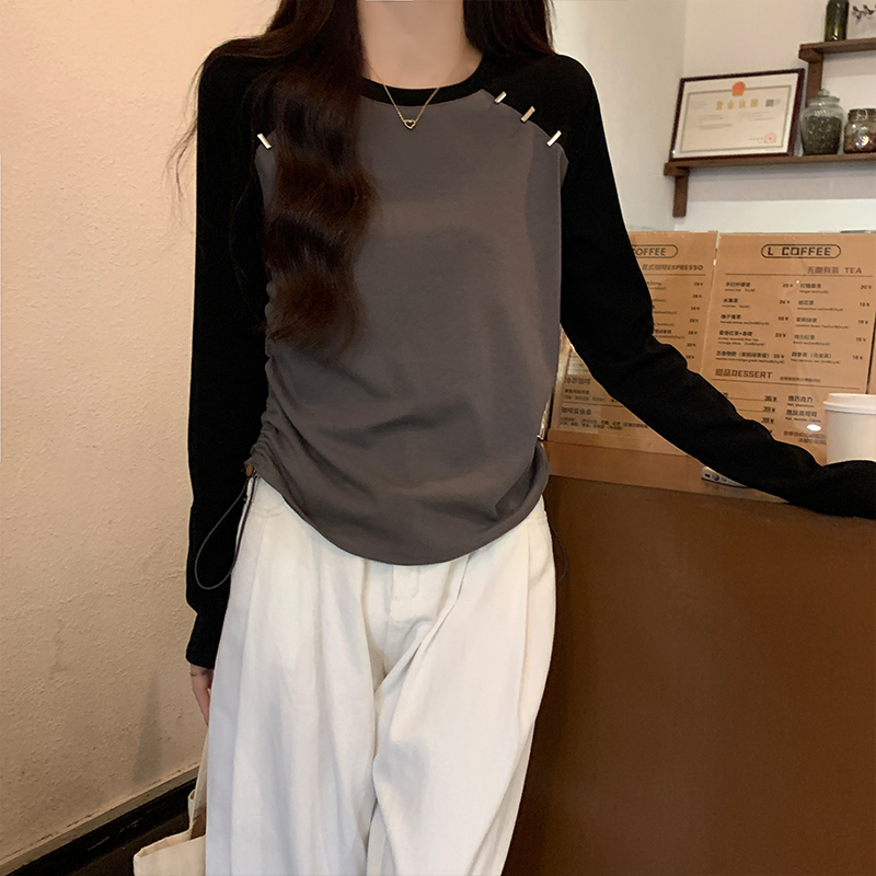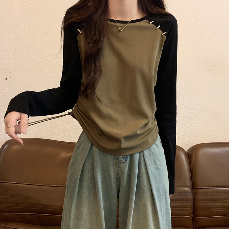 실제 샷 및 실제 가격 #American Retro Rascal Women을위한 긴팔 티셔츠 2025 Spring Design Niche Drawstring Body Slim