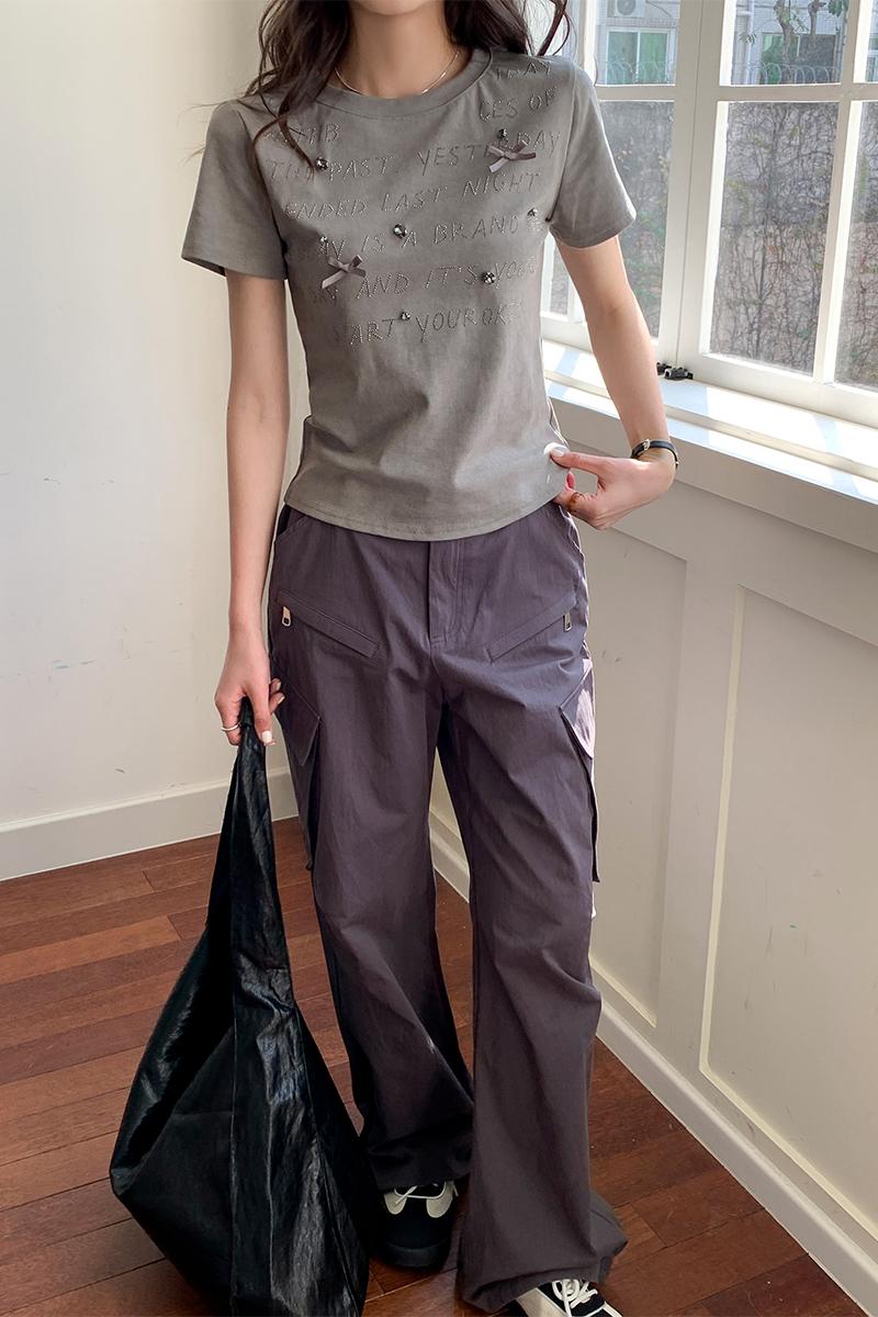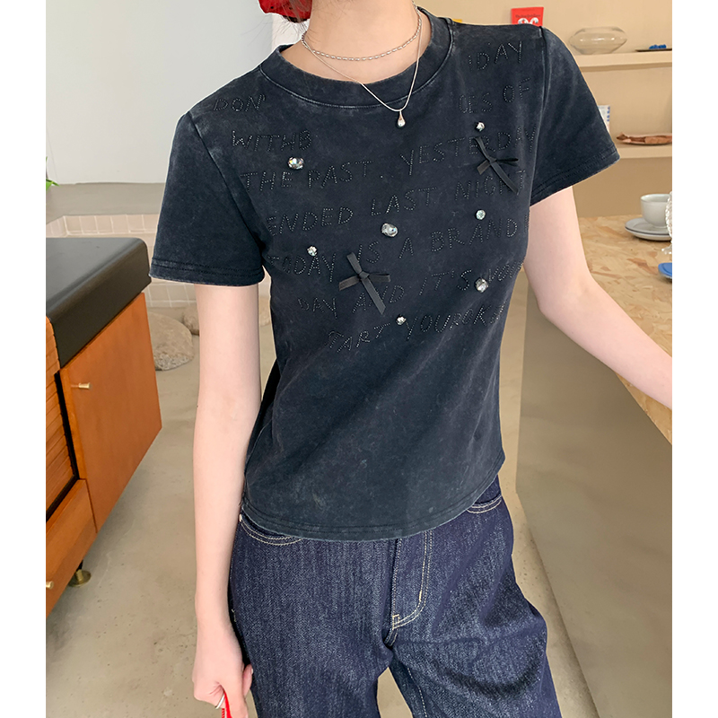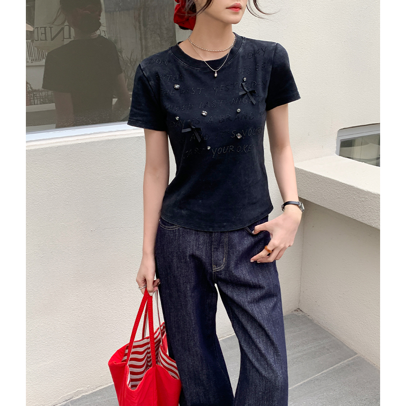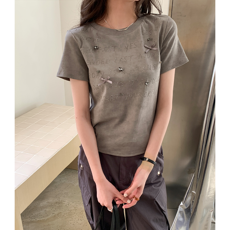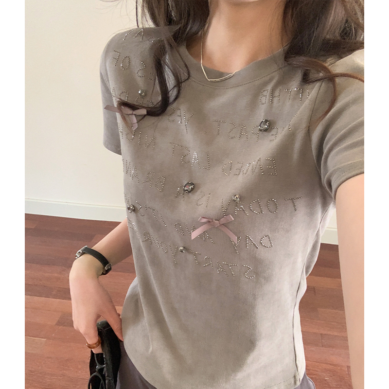 여성용 보비 인 다이아몬드 순수면 어깨 단락 티셔츠 2025 여름 유행 및 독특한 탑 슬림 및 슬림