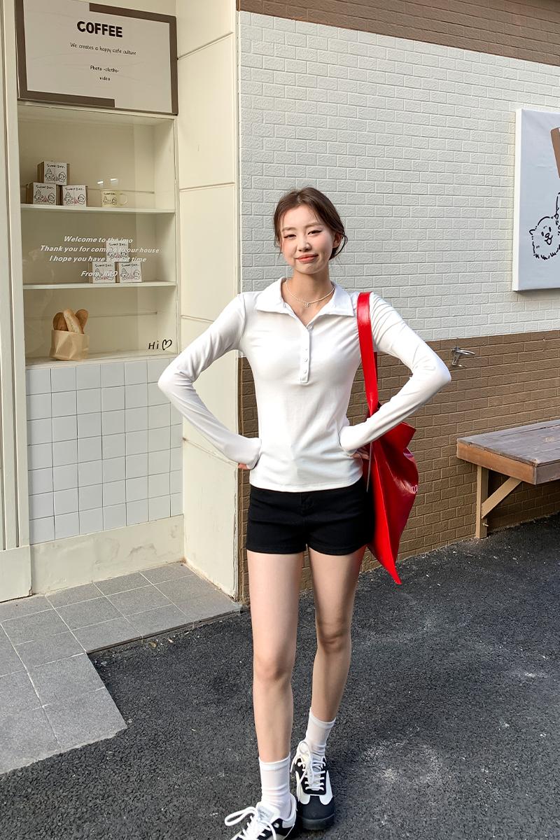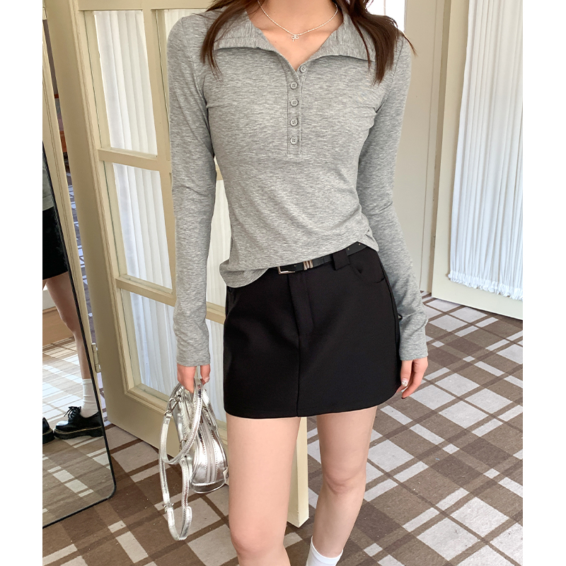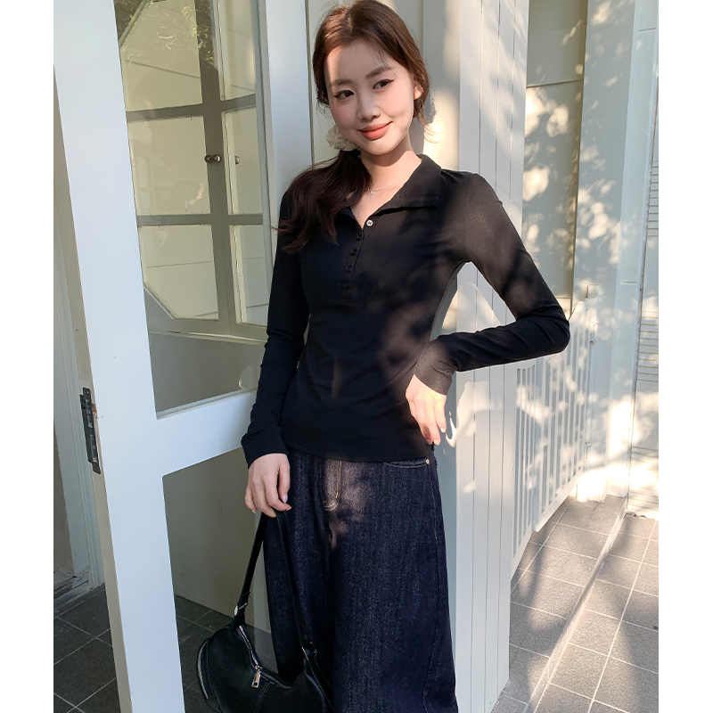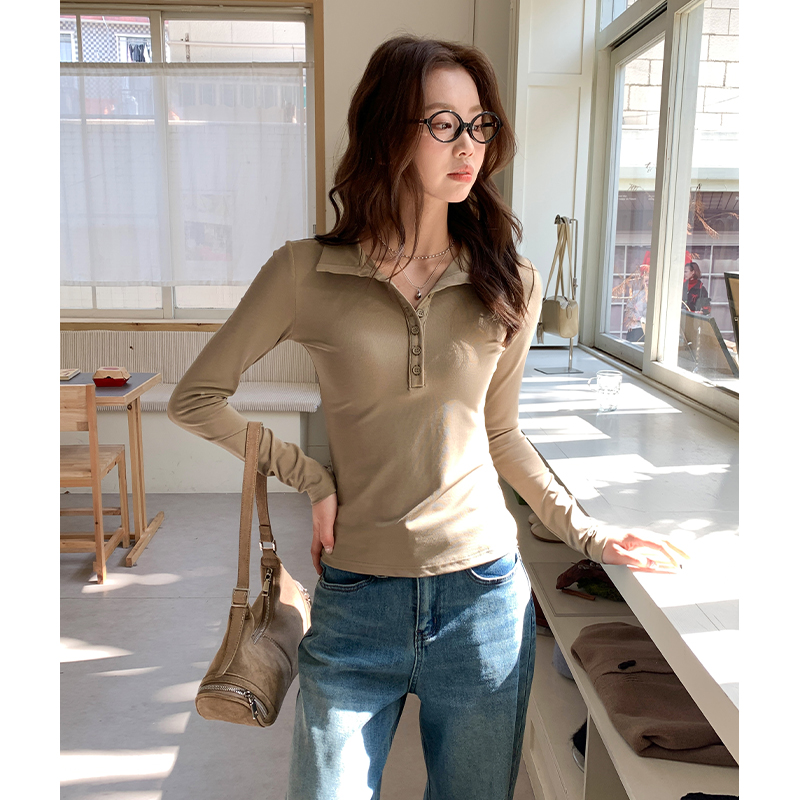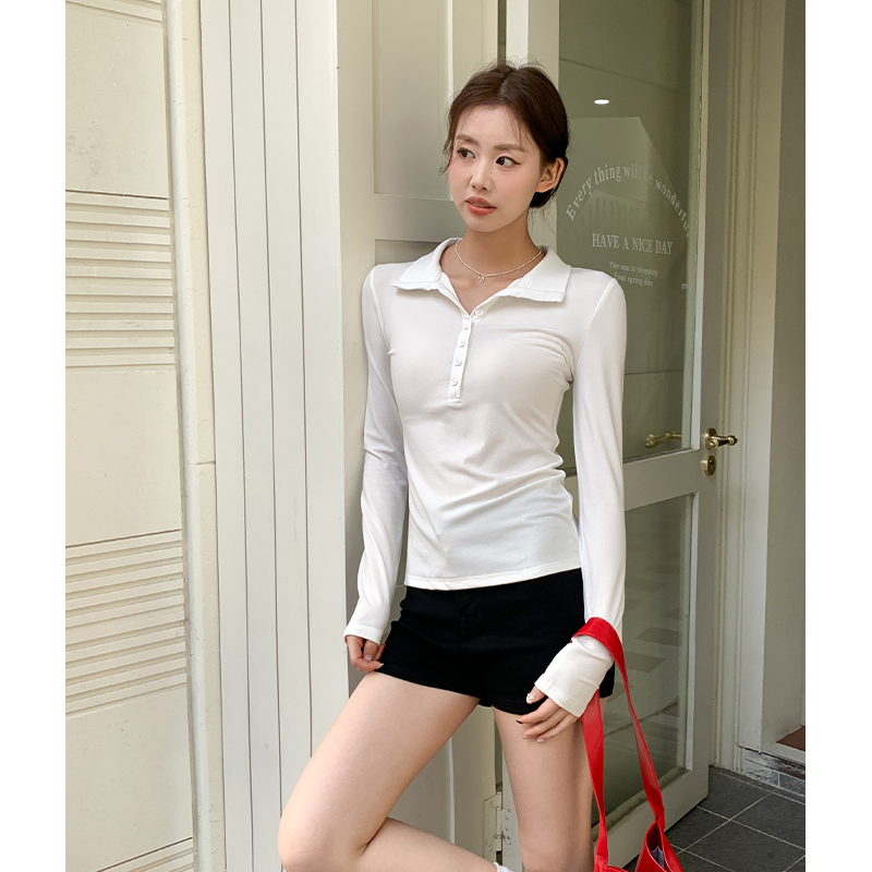폴로 셔츠, 전면 어깨 롱 슬리브 티셔츠 여성 2025 이른 봄 뉴 아메리카 핫 걸 버튼 상단 속옷베이스 셔츠