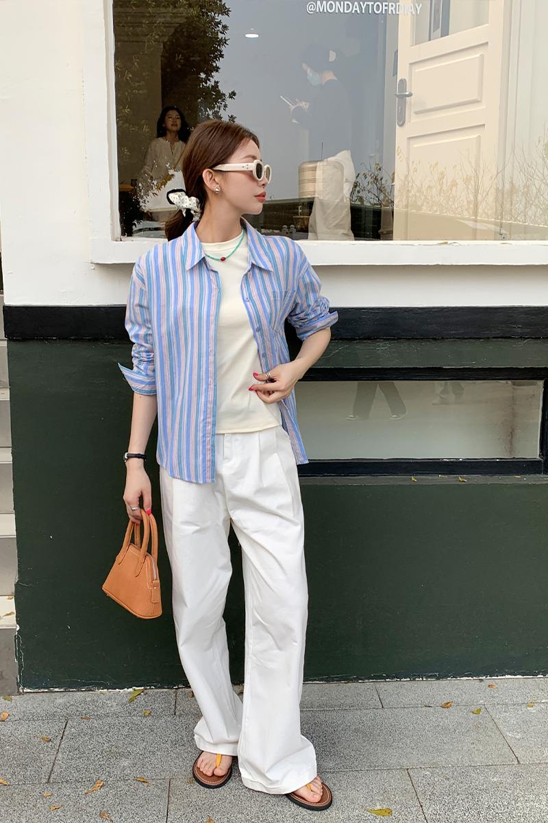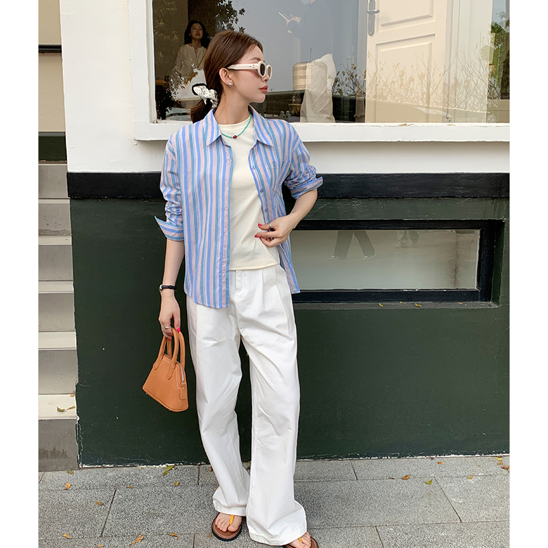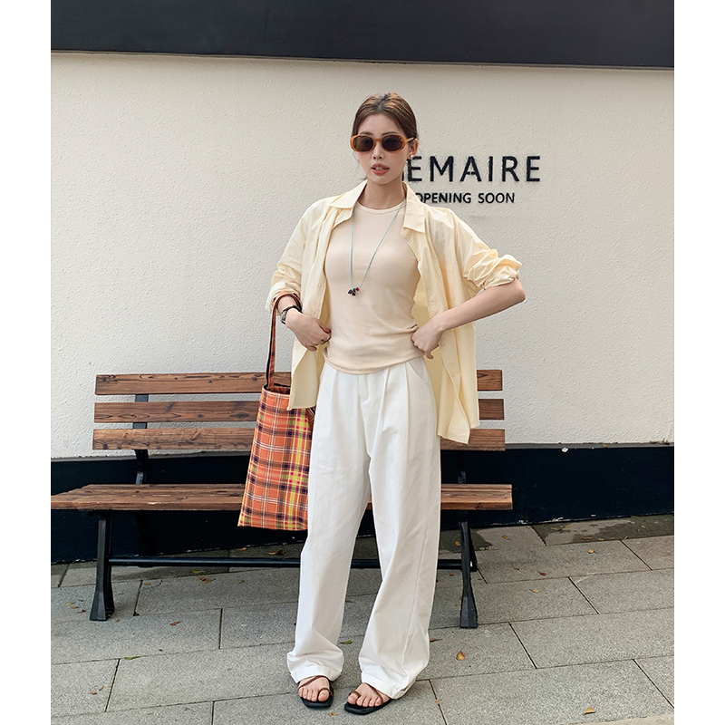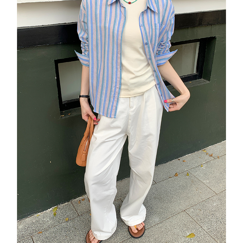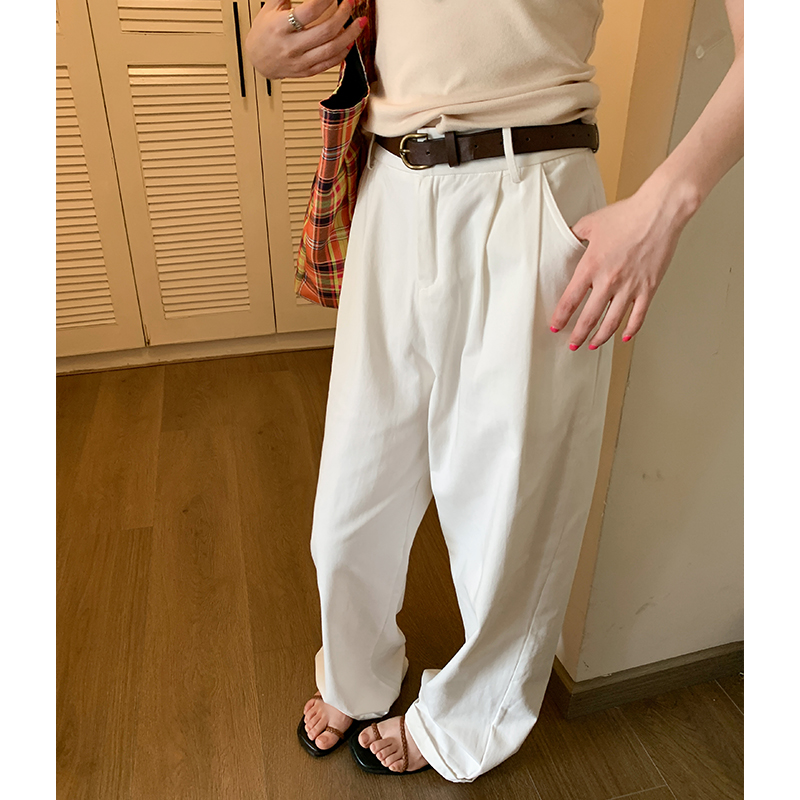 실제 가격#봄에 여성을위한 하이 웨이스트 캐주얼 스트레이트 레그 바지 2025 새로운 느슨한 드레이프 넓은 레그 청바지 바지