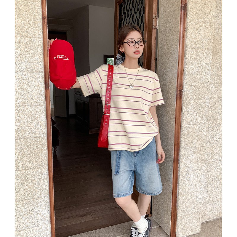 실제 샷과 실제 가격 #여름에 여성을위한 단축 된 단점 티셔츠 여름에 새로운 디자인 틈새 틈새 여성을위한 느슨한 캐주얼 탑