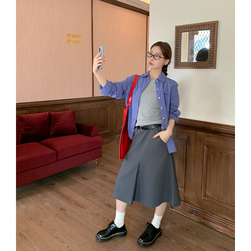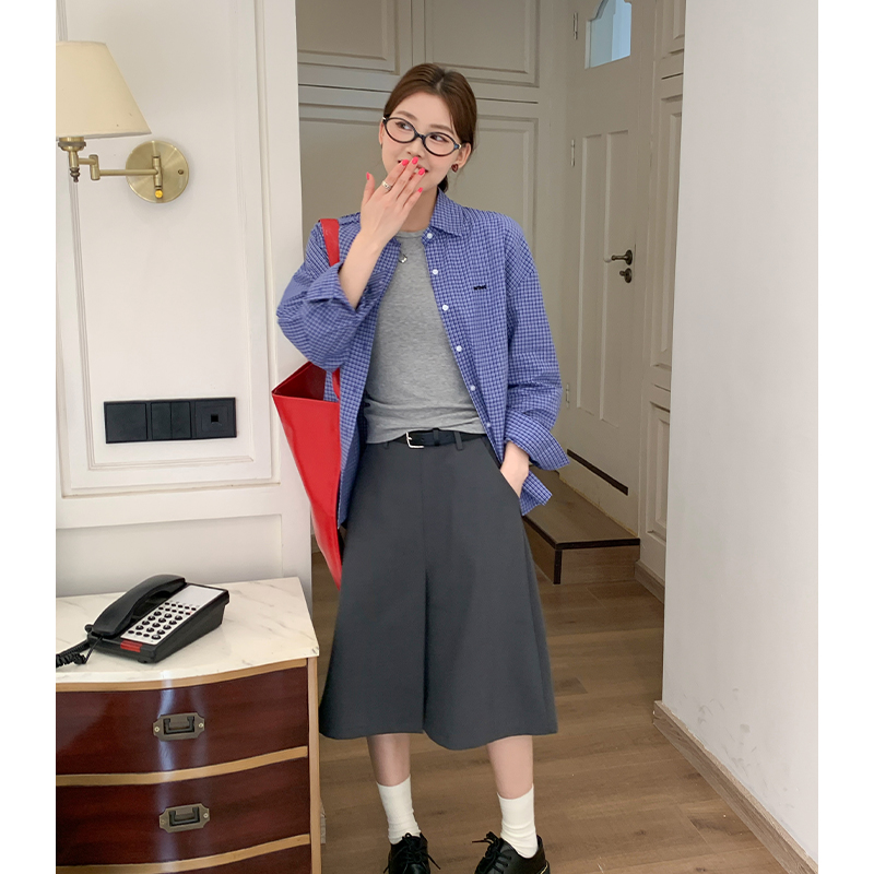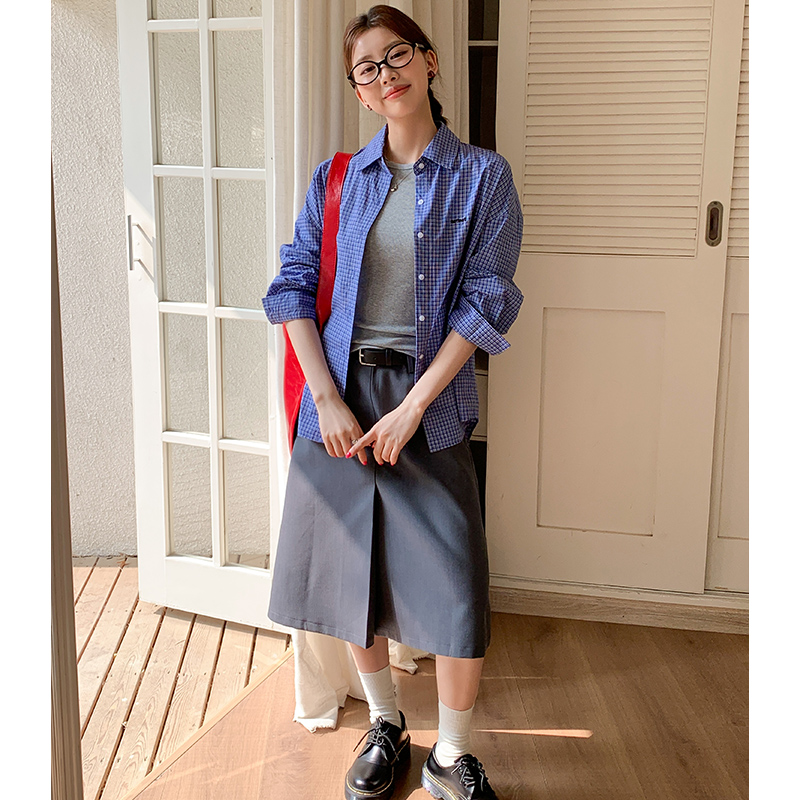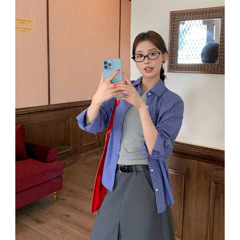 여성을위한 한국 격자 무늬 옷깃 셔츠 봄 2025 새로운 세련된 느슨한 캐주얼 셔츠 재킷 탑