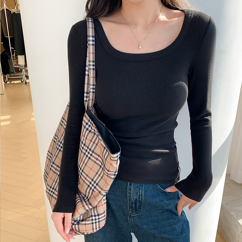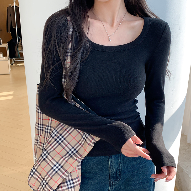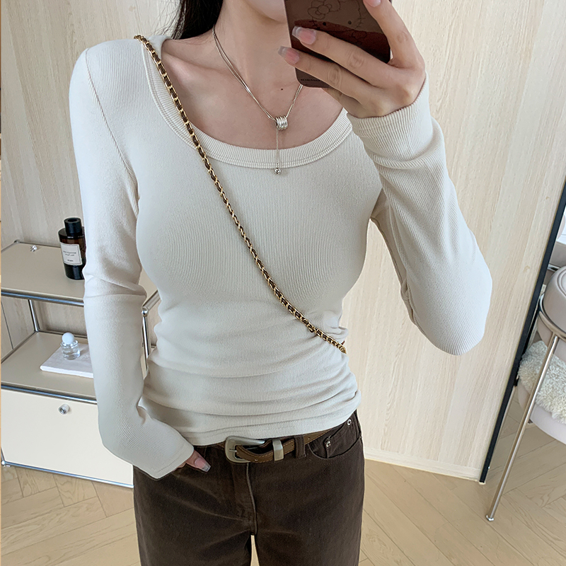여성용 단순하고 다목적 라운드 목이 긴팔베이스 셔츠의 한국 버전 가을과 겨울 따뜻한 슬림 한 내부 쇄골 타이츠
