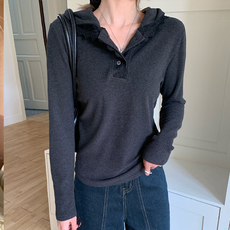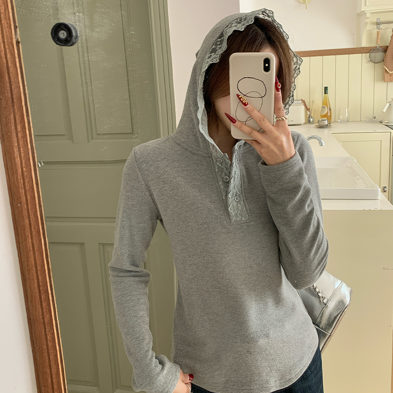 가을과 겨울에 여성을위한 실제 사진과 실제 가격 #lace 후드 티셔츠 2025 새로운 스웨트 셔츠 캐주얼 탑 플러스 벨벳베이스 셔츠