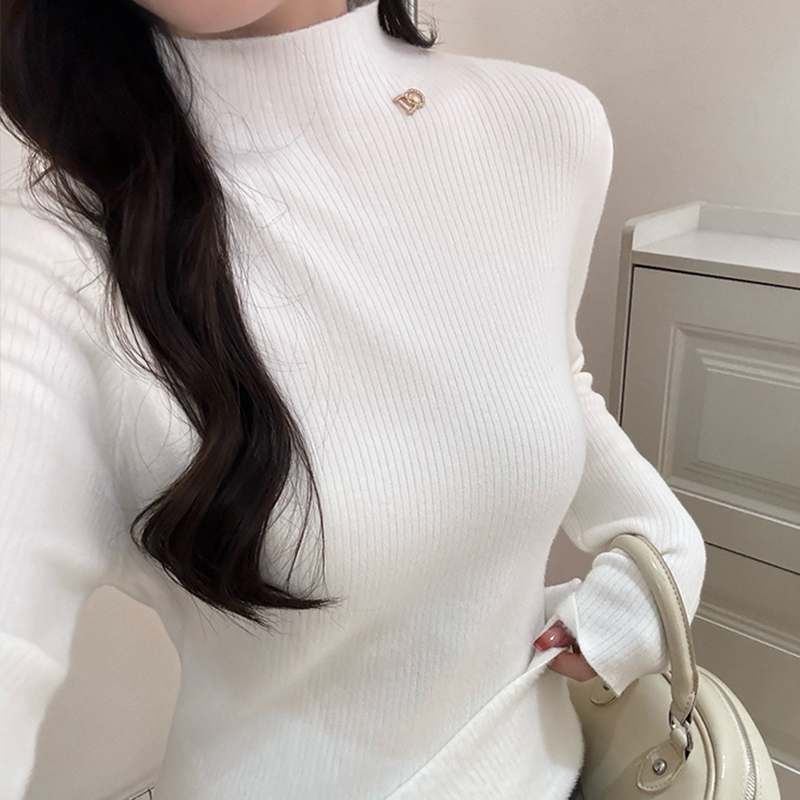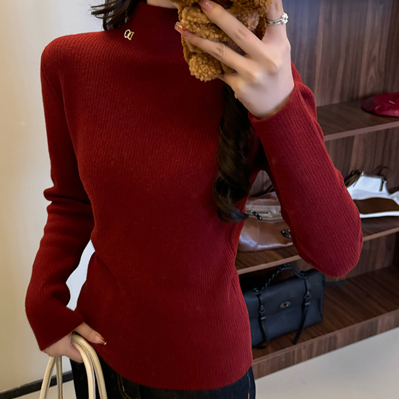 Real-Price #Mink Velvet Half Turtleneck 겨울 벨벳 니트베이스 셔츠 탑을 가진 여성을위한 검은 두꺼운 스웨터