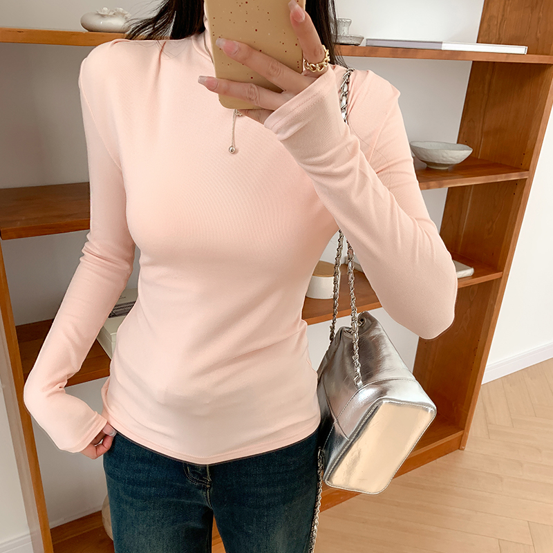 한국 버전 단순하고 다목적 파일 고리 긴 소매베이스 셔츠 가을과 겨울에 여성을위한 여성을위한 여성을위한 새로운 따뜻한 슬림 한 바디 셔츠