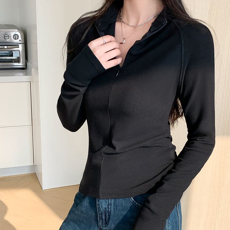 반 터 틀린 독일 벨벳 플러스 여성을위한 벨벳베이스 셔츠 Q 가을과 겨울 새 생선 뼈 세미 지퍼 탑 티셔츠