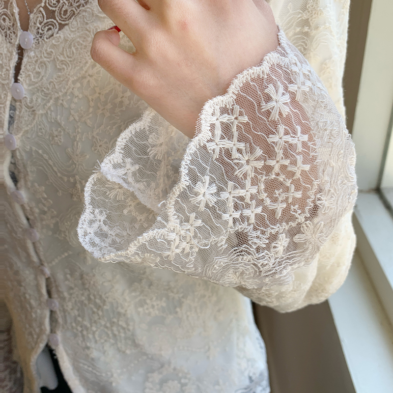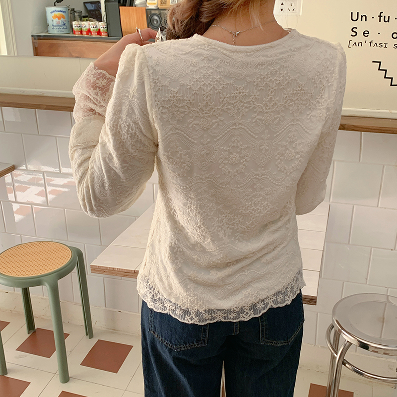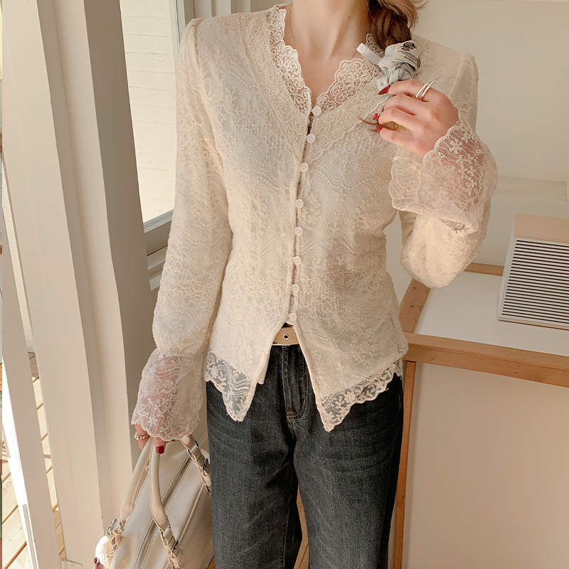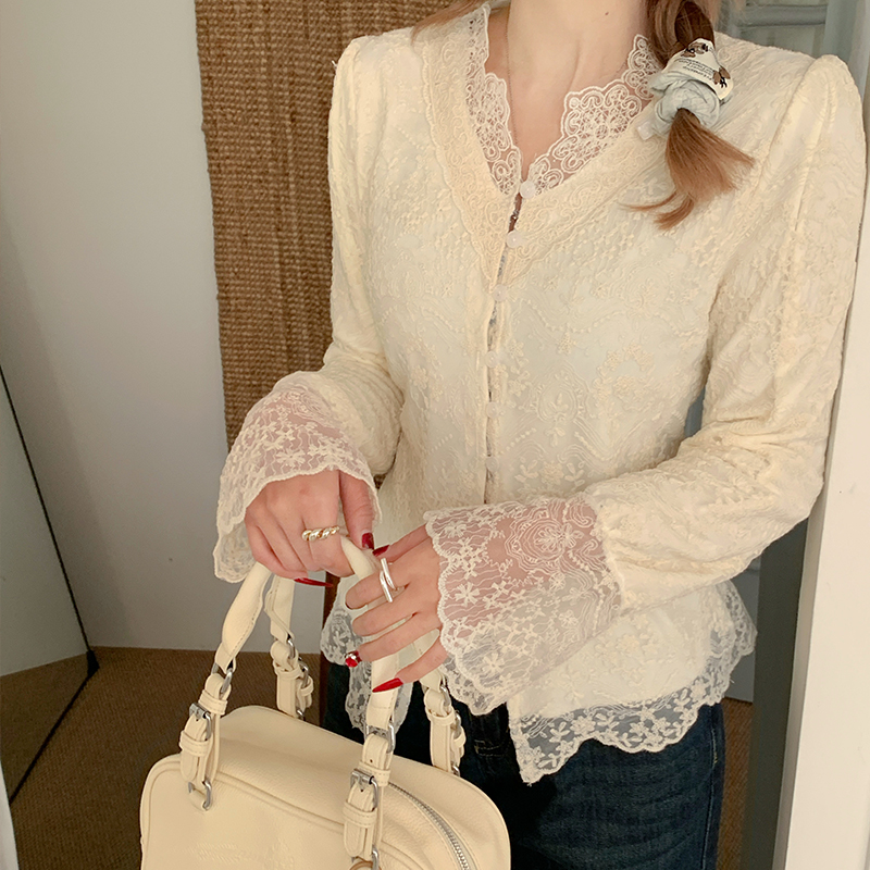벨벳 두꺼운 레이스베이스 셔츠 여성 새로운 긴팔 셔츠 디자인 프랑스 탑