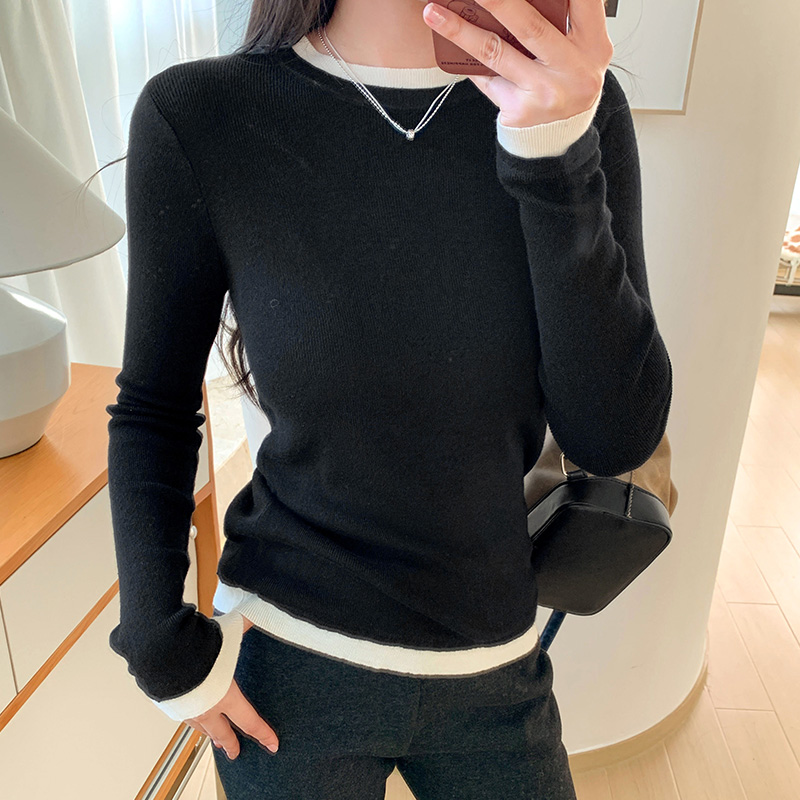 가을과 겨울이있는 여성을위한 가짜 2 피스 니트베이스 셔츠 새로운 두꺼운 부드러운 슬림 한 부드러운 스웨터 탑
