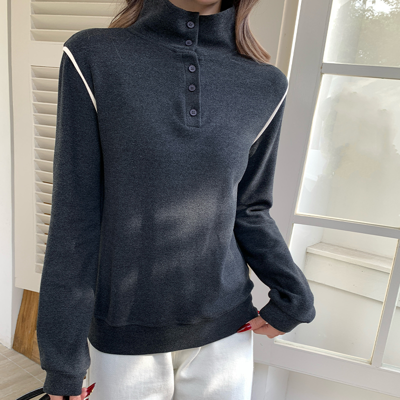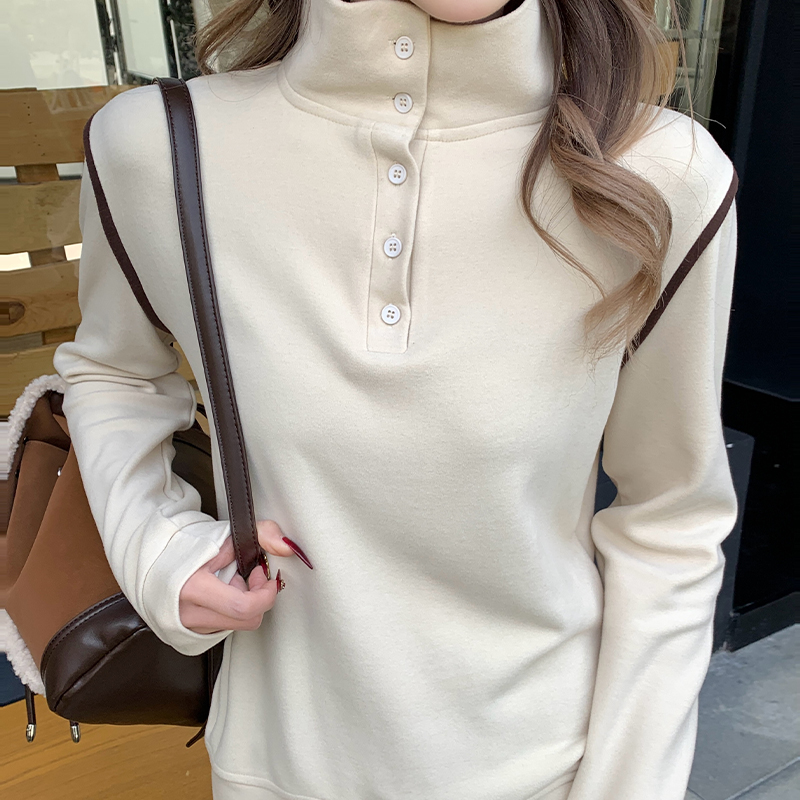 실제 가격#Turt Neck Plus 가을 및 겨울 버튼 디자인 여성을위한 벨벳베이스 셔츠 톱 양면 모피 티셔츠