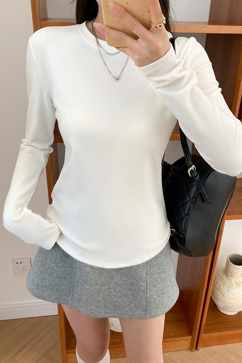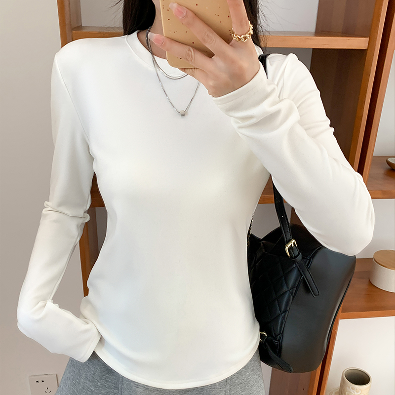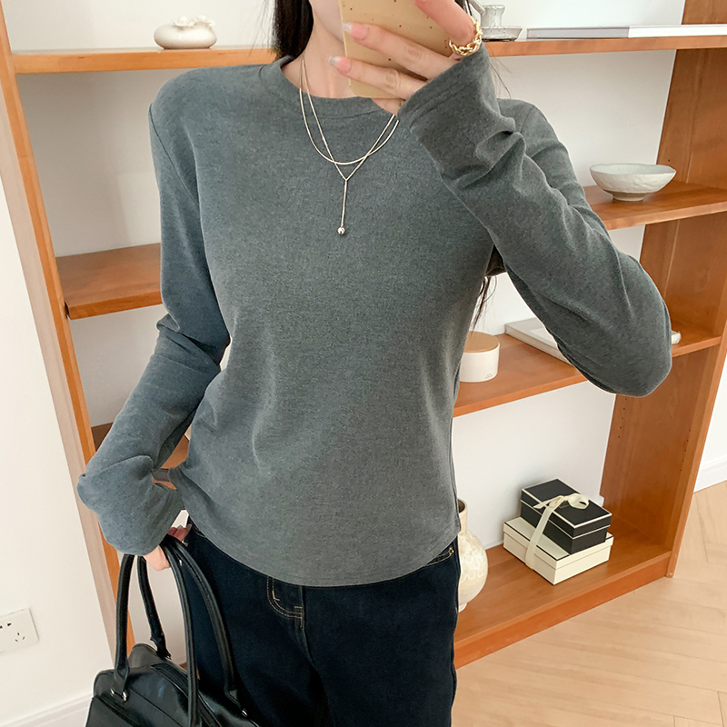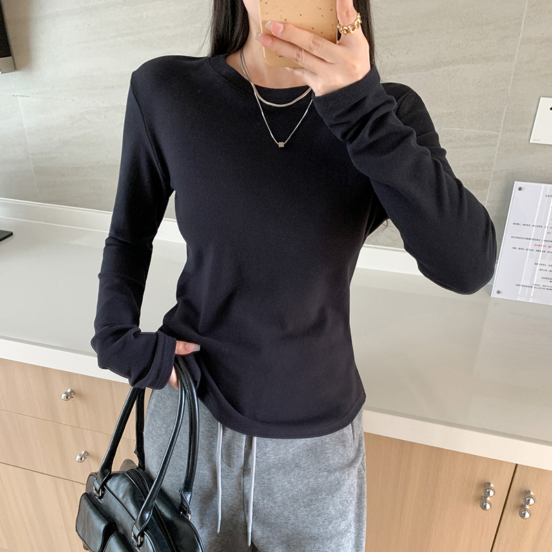 실제 샷과 고급 기질 라운드 넥베이스 셔츠 여성용 가을과 겨울 새 슬림 부드러운 멍청한 내부 상단