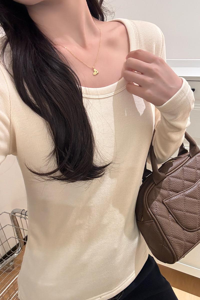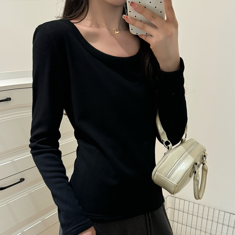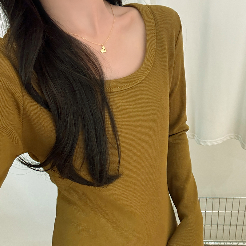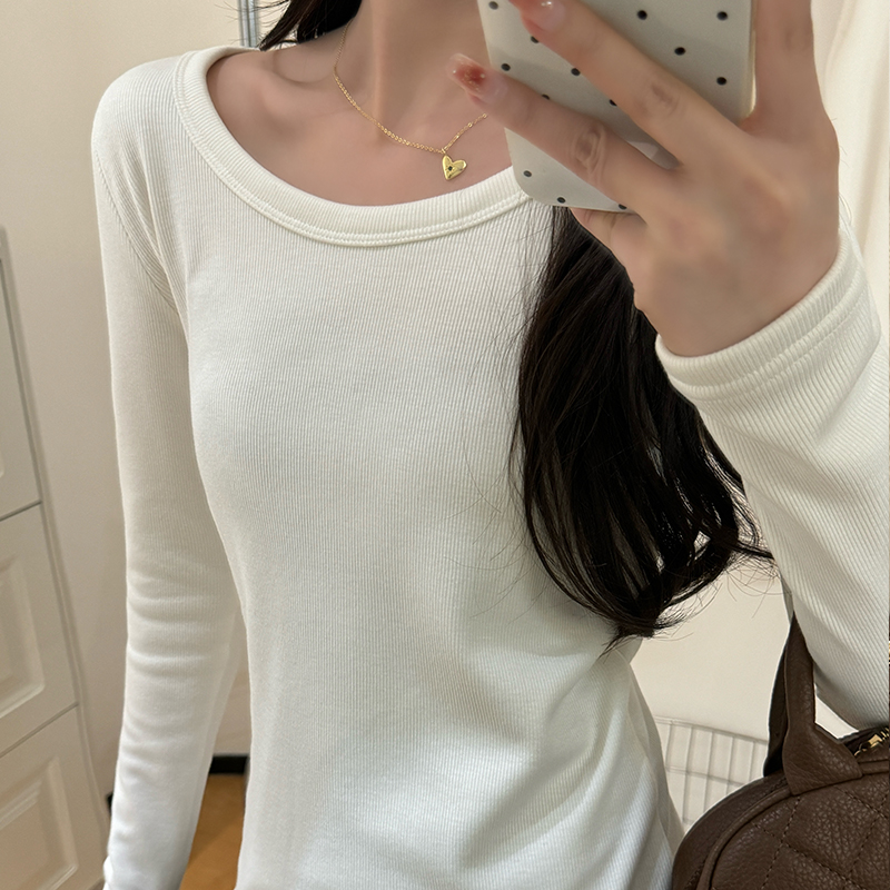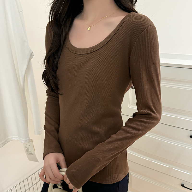 사진 가을과 겨울 장거리 슬림 셔츠를 입은 여성용 슬림하고 슬림베이스 셔츠 단색 긴팔베이스 셔츠 탑