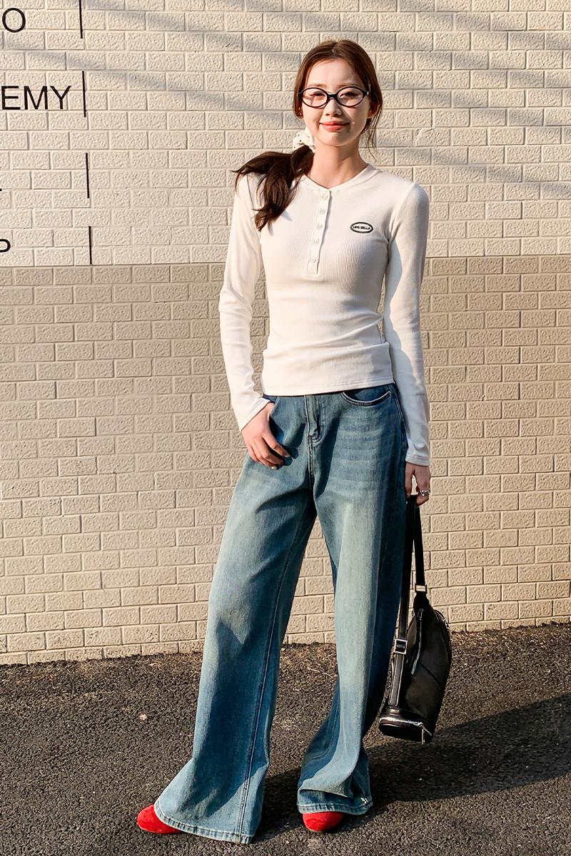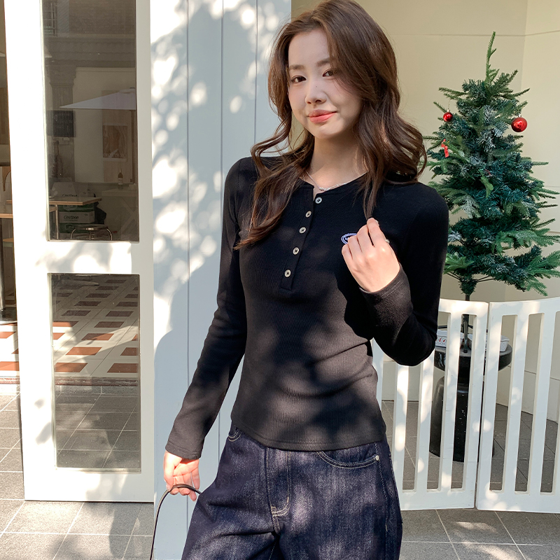 실제 가격의 미국 복고풍 버튼 봄에 여성을위한 긴팔 티셔츠 2025 년 새로운 스타일 슬림 핏 슬림베이스 셔츠
