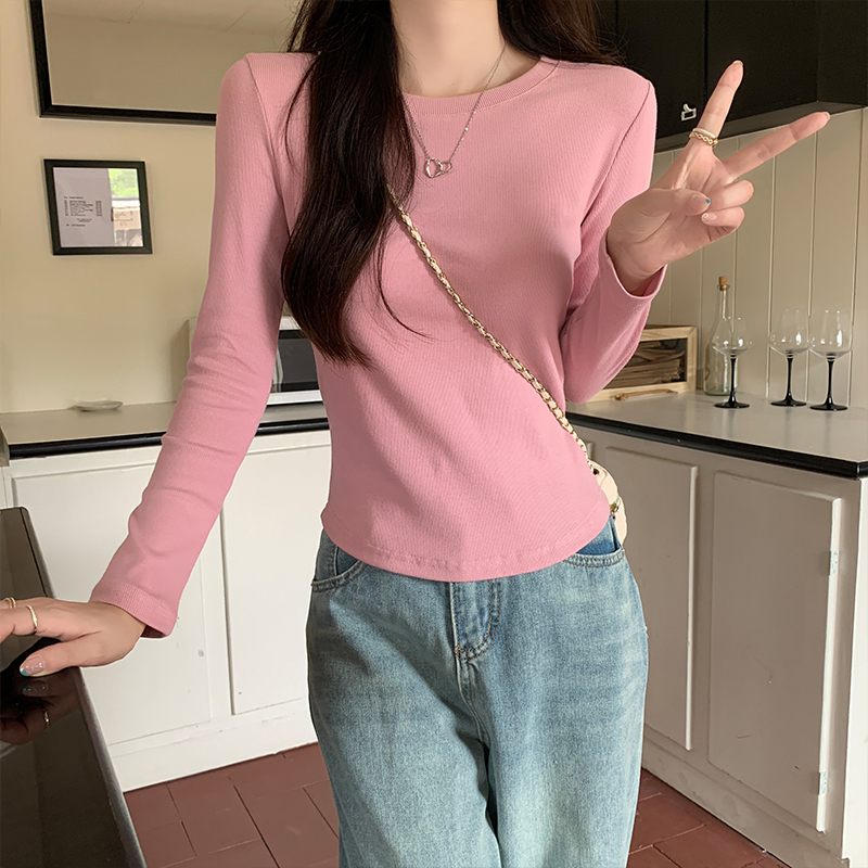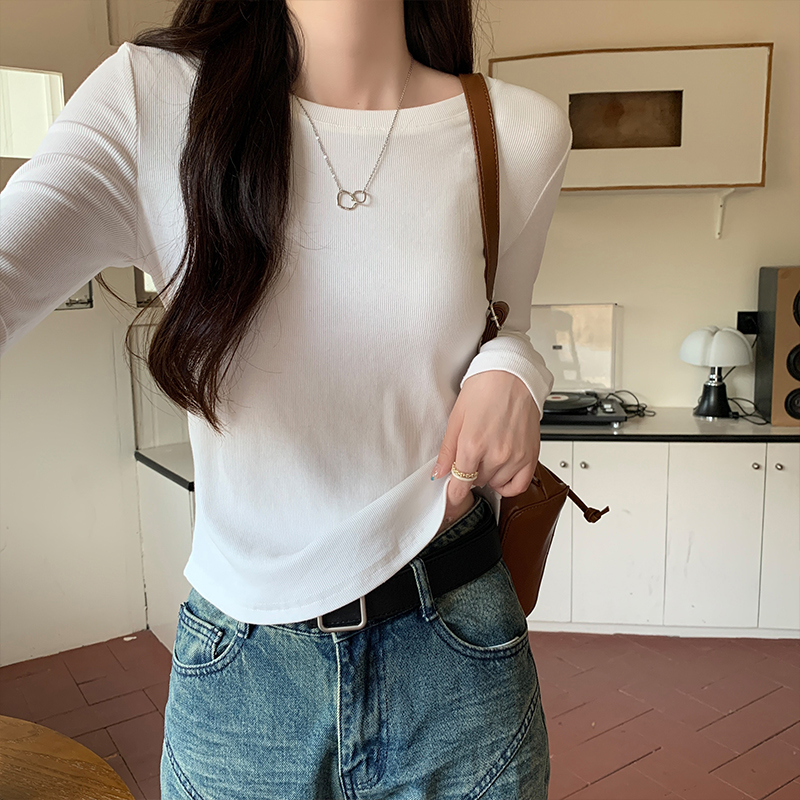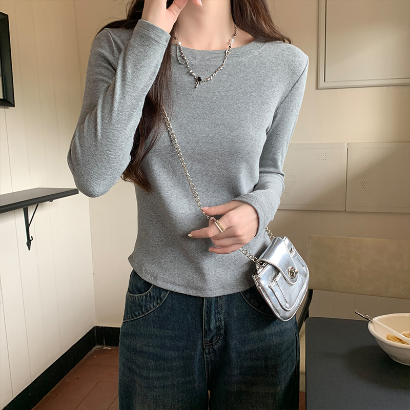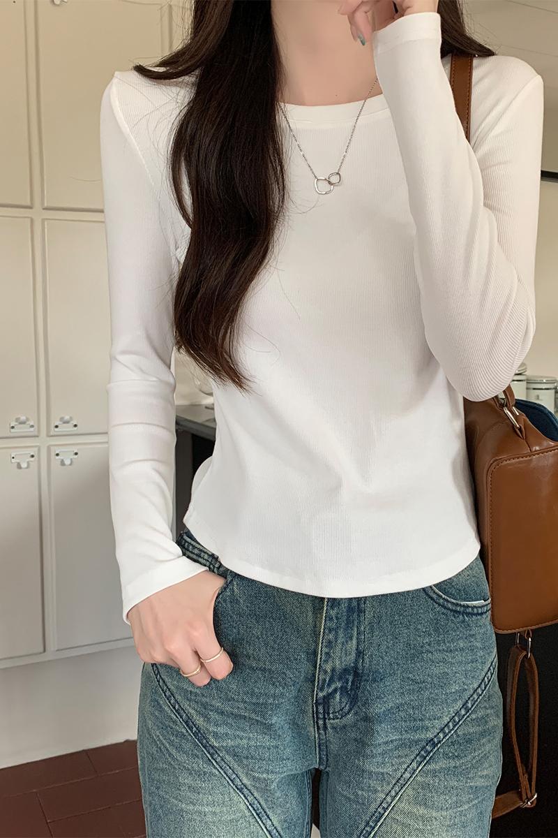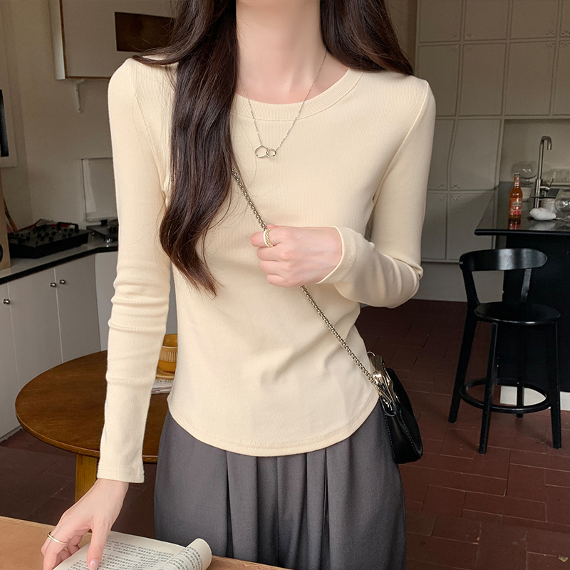 여성을위한 단색 내부 긴팔 티셔츠 새로운 가을과 겨울 패션 다목적 고급 순수면베이스 셔츠 탑