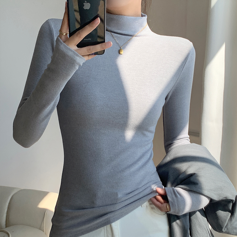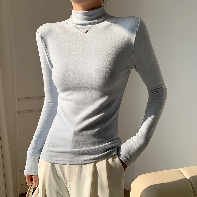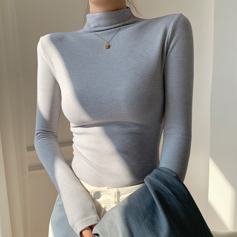 실제 가격#가을과 겨울에 여성을위한 양면 독일 벨벳 둥근 목베이스 셔츠