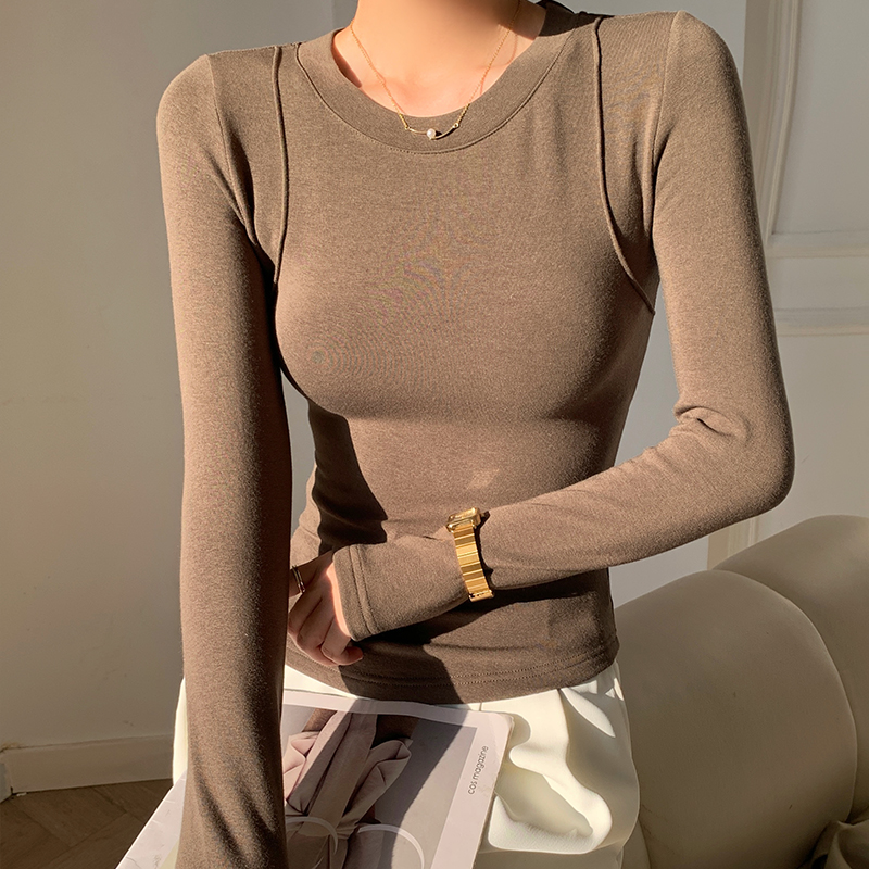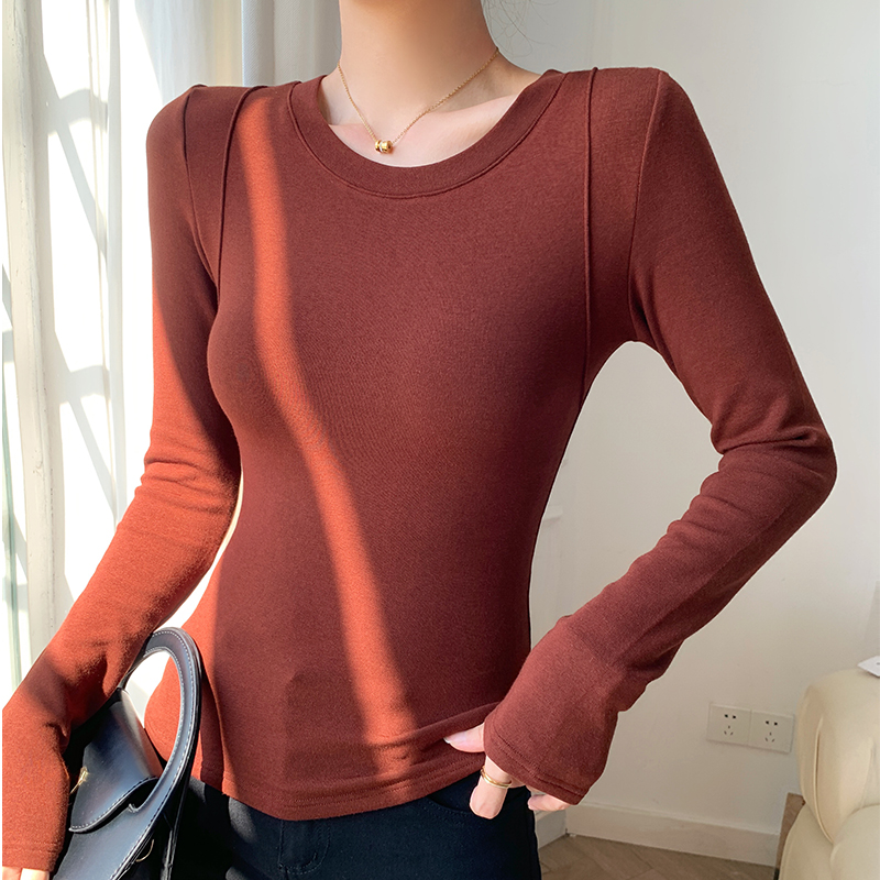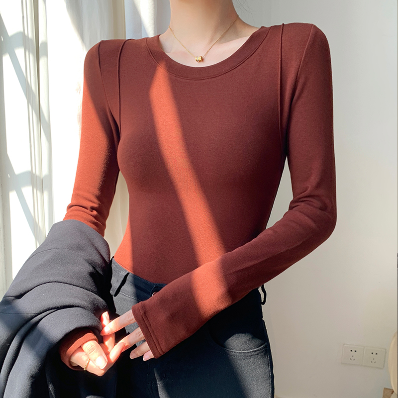 여성용 타이트베이스 셔츠 새로운 가을과 겨울 내부 착용 슬림 한 날씬한 날씬한 허리 긴 슬림 티셔츠 탑