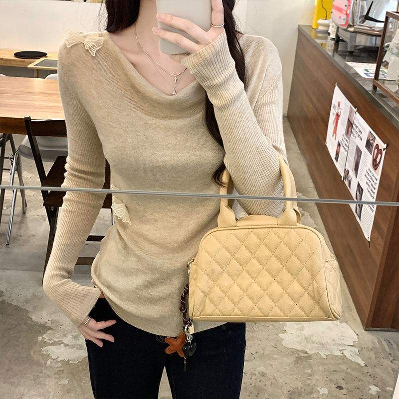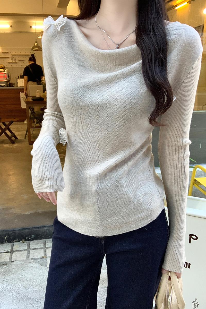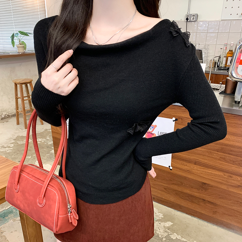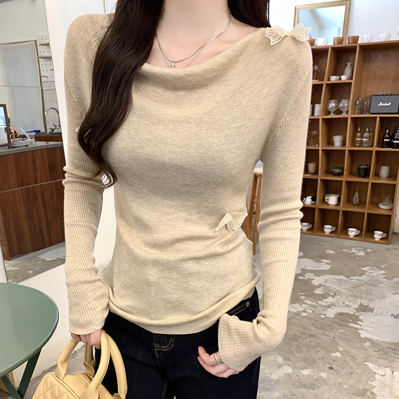 여성용 3 차원 나비 스웨터베이스 가을 새 슬림 칼라 최고 슬림 긴 슬림 티셔츠