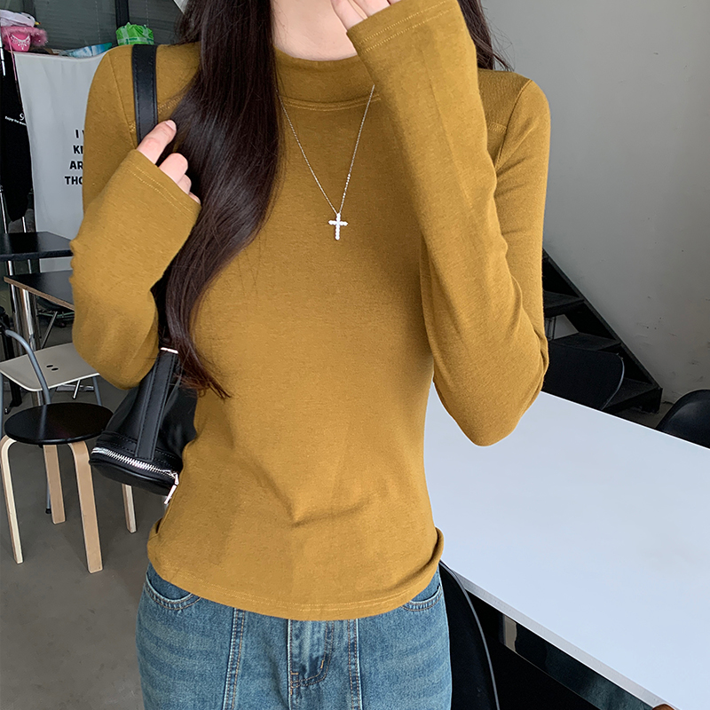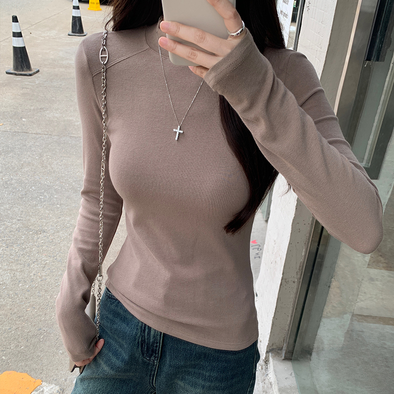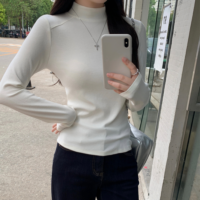 실제 가격 #Half-Turtleneck Cashmere Cashmere 여성을위한 여성을위한 여성을위한 여성용 티셔츠가있는 가을과 겨울 스타일의 스 플라이 싱 중간 칼라 탑