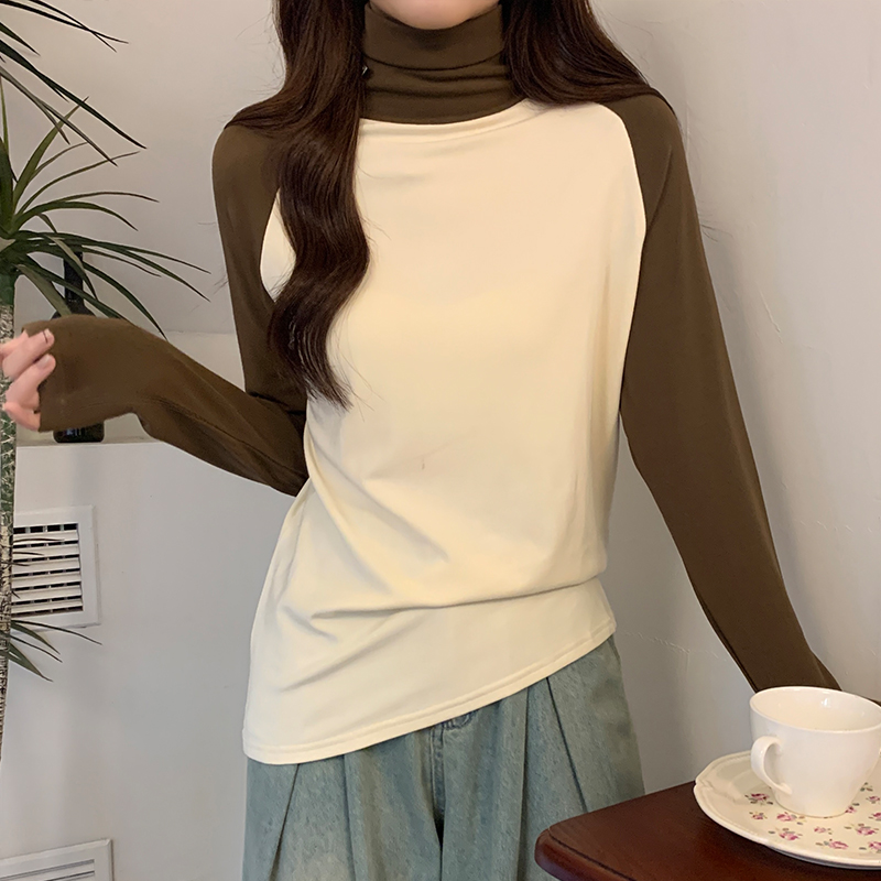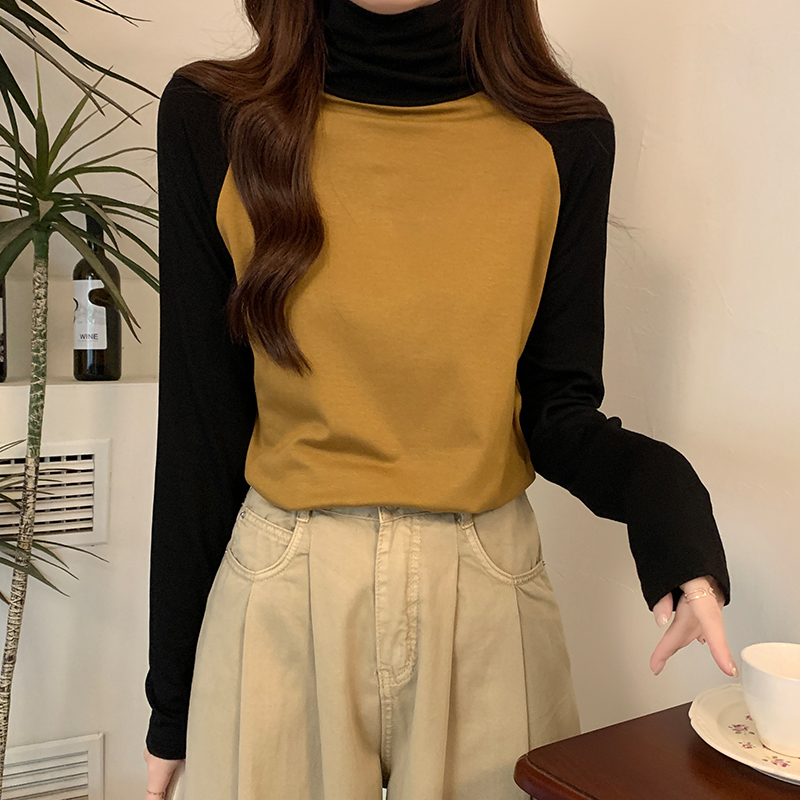 실제 가격의 실제 샷 #Dust 더미의 더미 더미, 터틀넥 캐시미어베이스 여성 ins 트렌디 한 가을과 겨울 느슨한 헝겊 어깨 꼭대기 연삭 긴팔 티셔츠