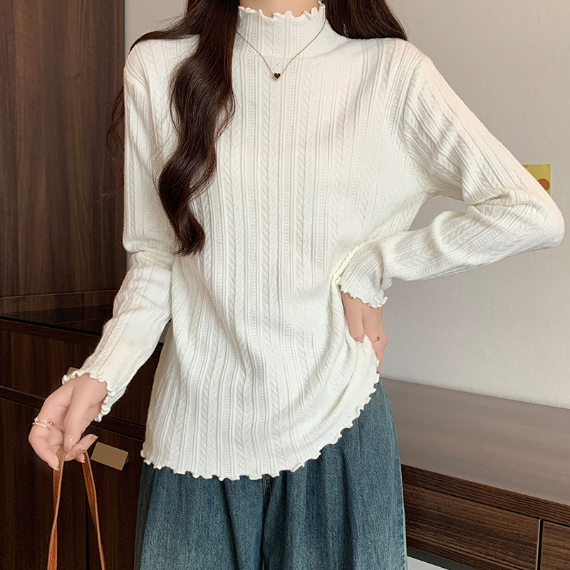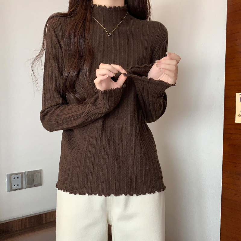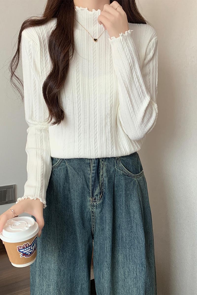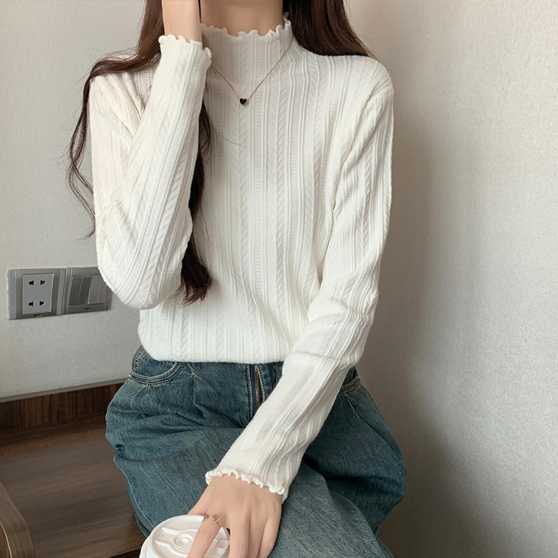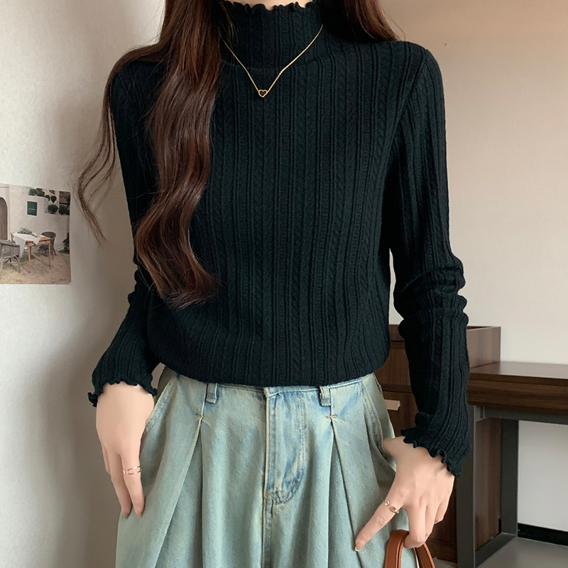 Real-Price Real-Life Photos노래 스타일의 검은 귀는 여성용 반 높이의 목베이스 스웨터 가을 단순 슬림 바디 긴 슬리브