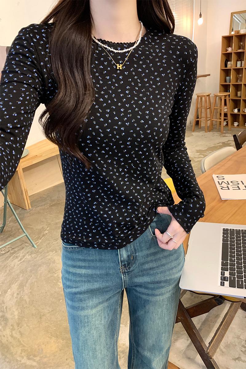 실제 가격#한국어 버전의 플로럴 순수면 숄더 롱 슬립 티셔츠