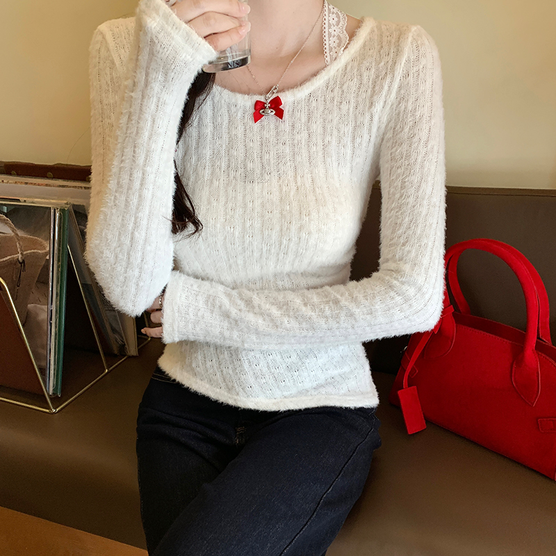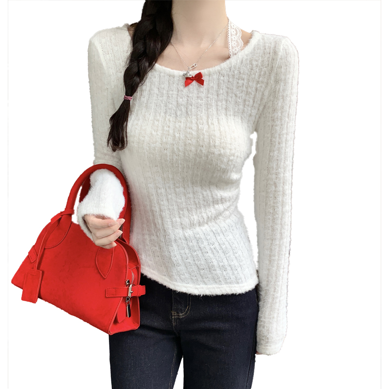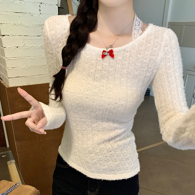 Real-Price Real Shot #Sweet Hot Girl 레이스 스 플라이싱 소프트 글 루틴 티셔츠 이른 가을 에이지와 여성을위한 여자를위한 부드러운 멍청한 티셔츠