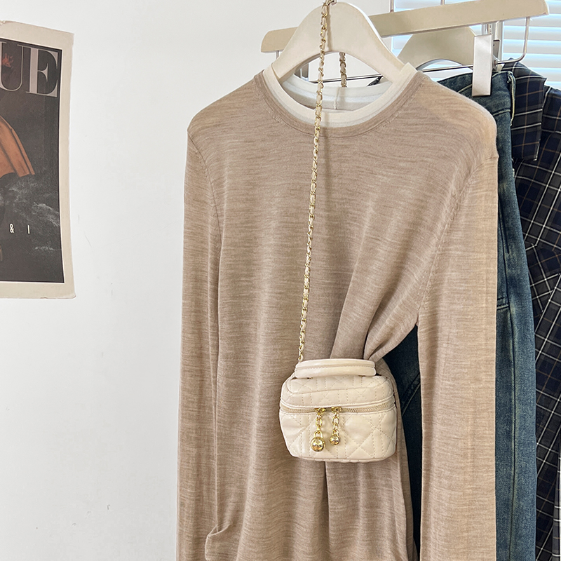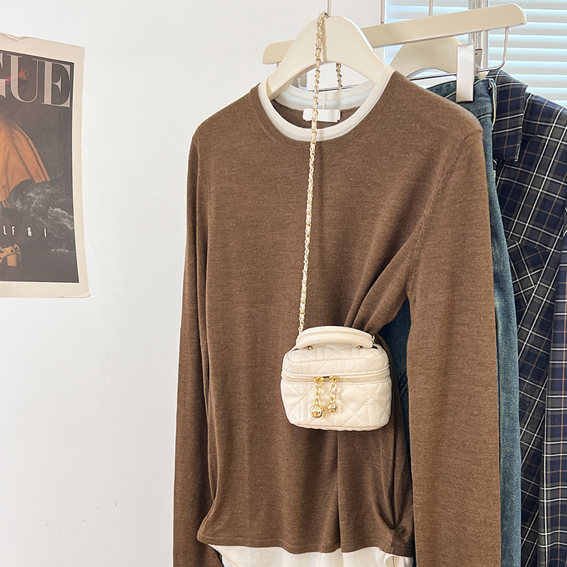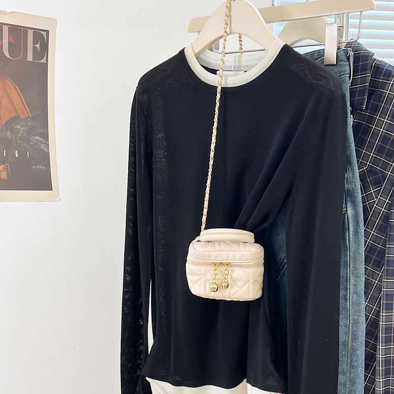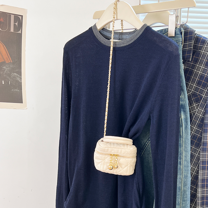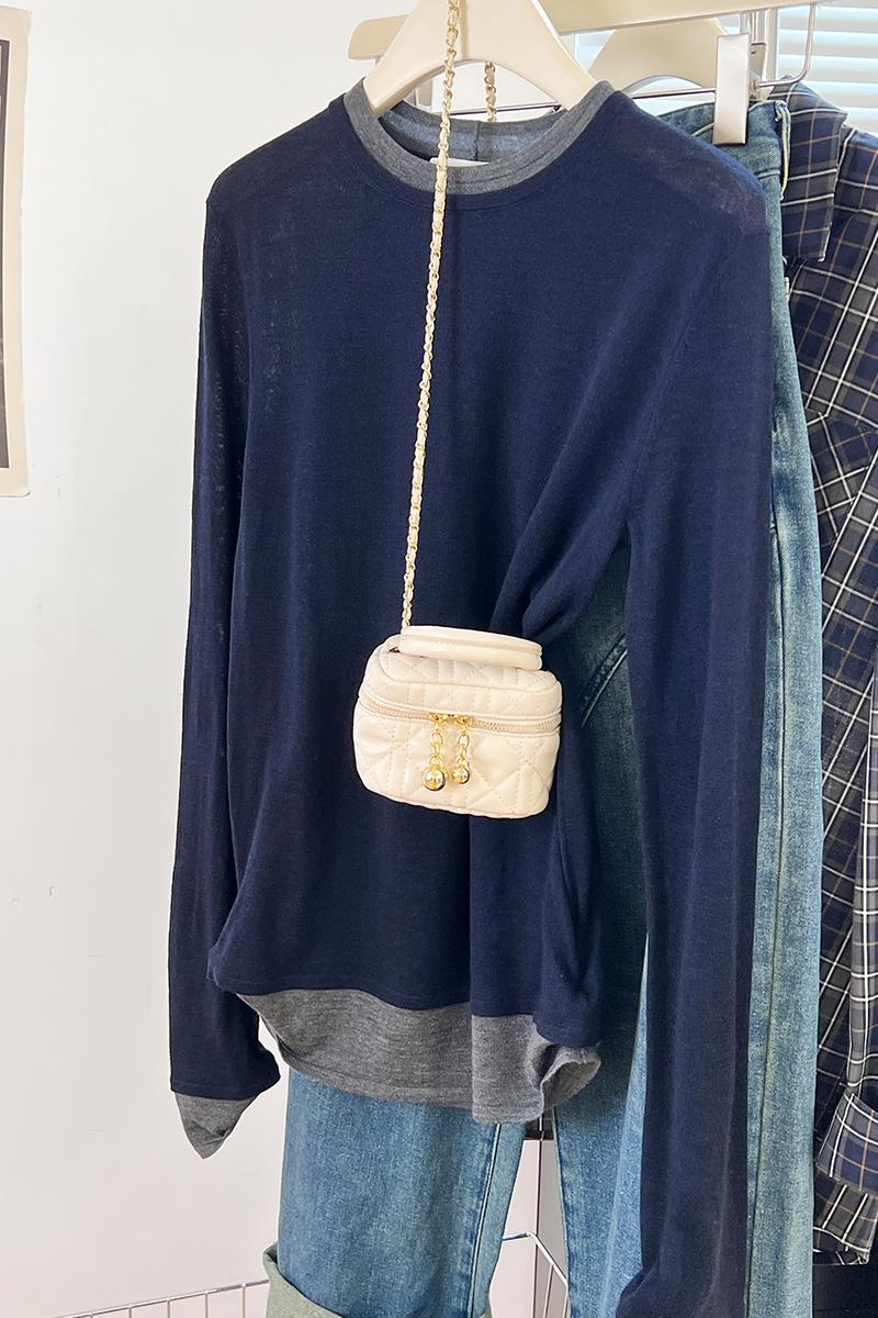 진짜 가격 실제 샷 #Navy Blue 가짜 2 피스 앞쪽 어깨 긴팔 티셔츠