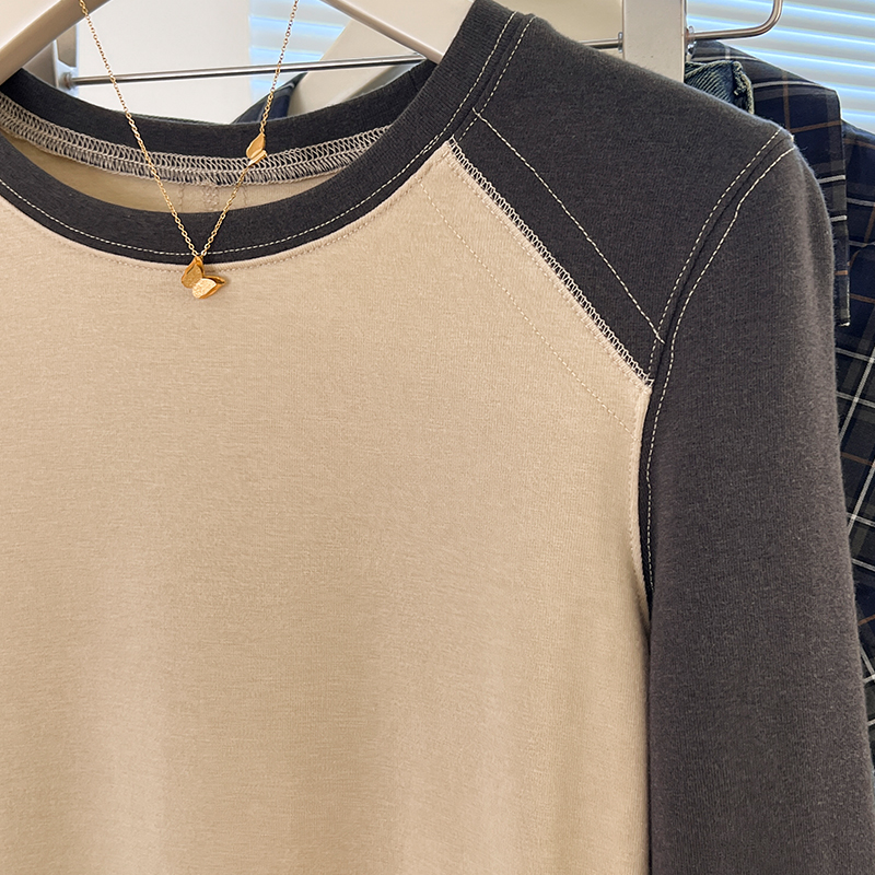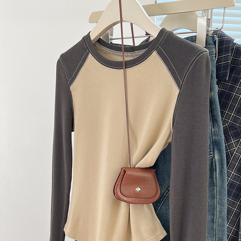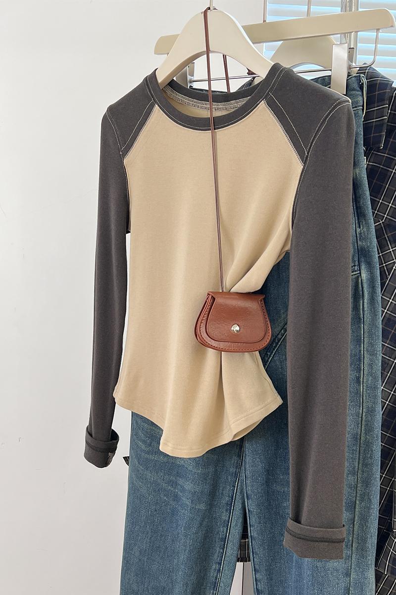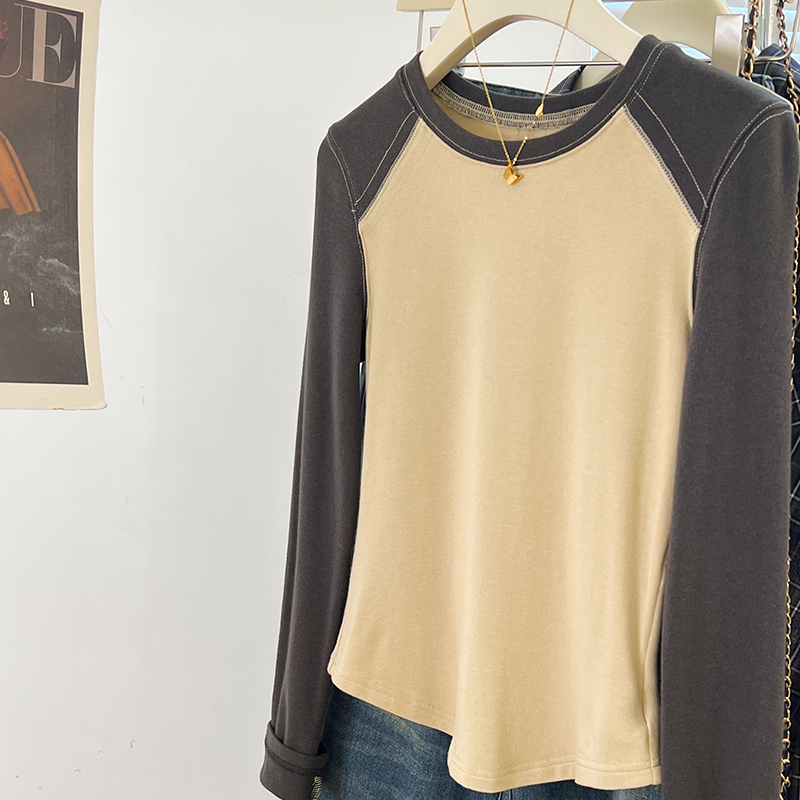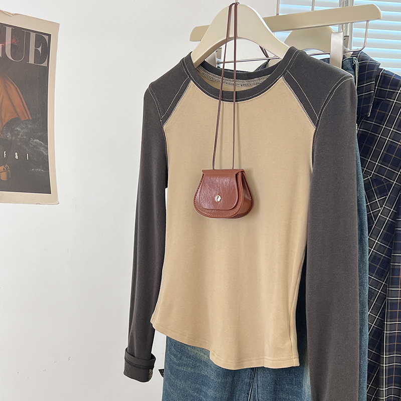 실제 가격 실제 촬영 #아메리칸 레트로 라스 슬리브 가을 바닥 셔츠 앞쪽 어깨 짧은 상단의 여성을위한 긴팔 티셔츠
