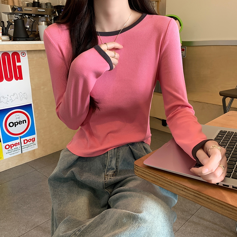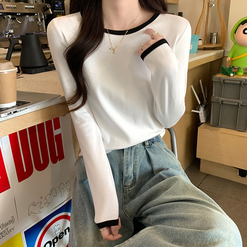 Real-Price Real Shot #American Retro Front Shoulder Long-Sleeved 티셔츠 봄과 가을 디자인 틈새 기본 셔츠 속옷