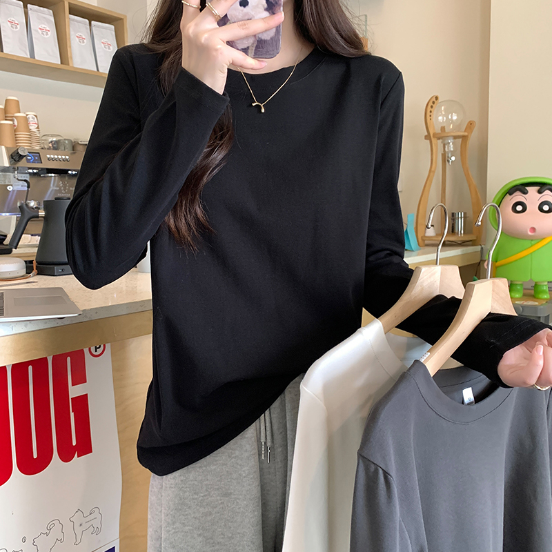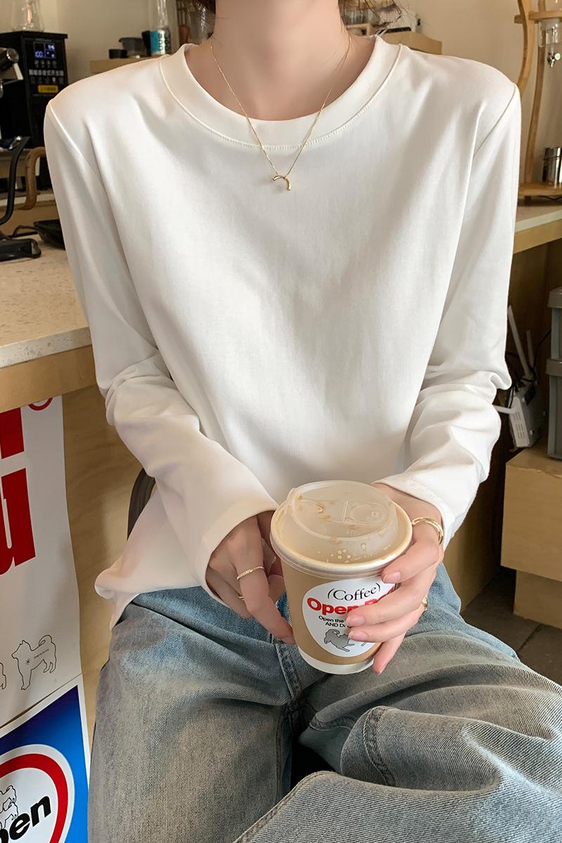기발한 흰색 스트레이트 어깨 느슨한 긴팔 티셔츠 가을에 여성을위한 긴팔 티셔츠 새로운베이스 셔츠 속옷 탑