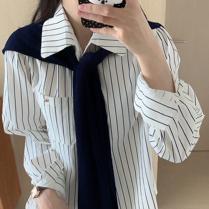 스트라이프 셔츠 목도리 2 피스 세트 새로운 디자인 셔츠