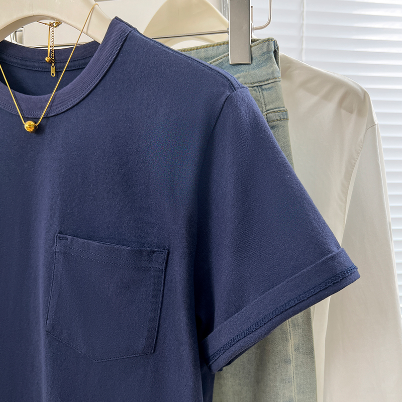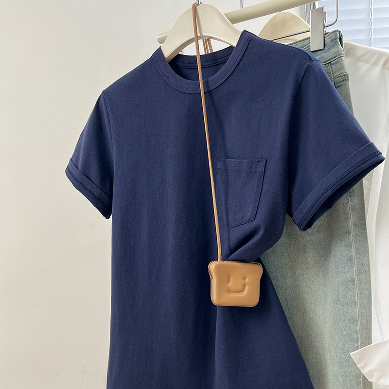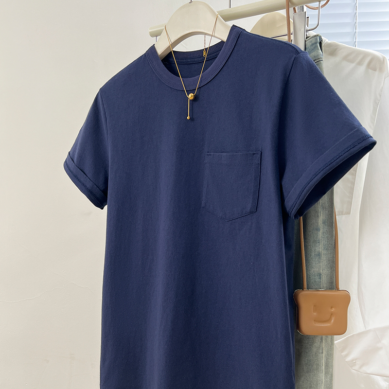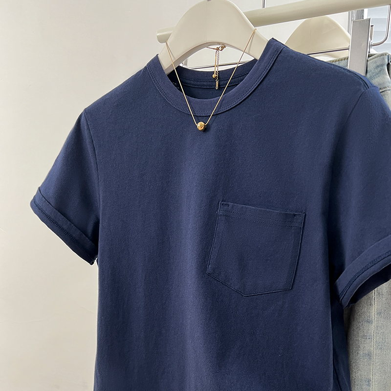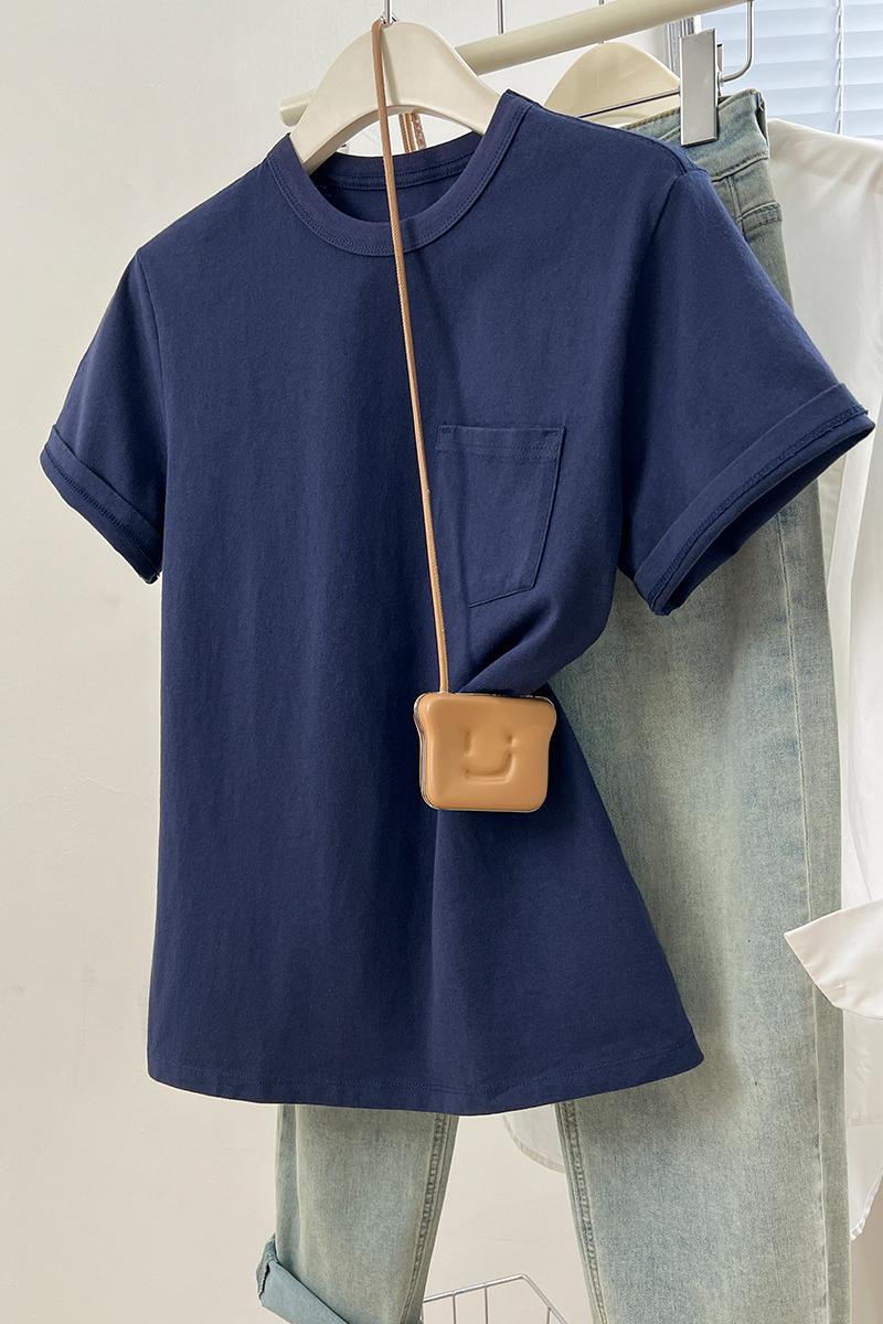 Real-Price Real Shot #Navy Blue Pure Cotton Shoulder Short-Sleeved 티셔츠 여름에 여성을위한 한국 티셔츠 캐주얼 슬림하고 느슨한 탑
