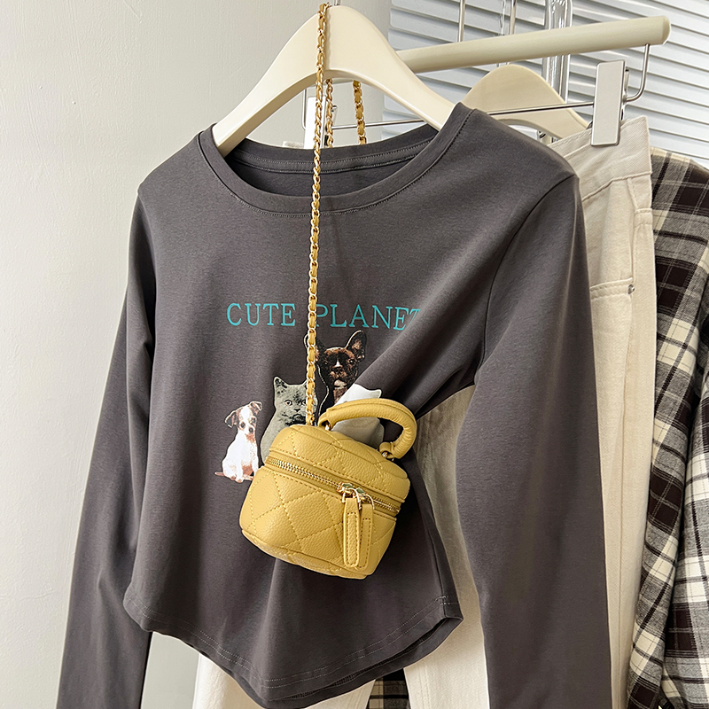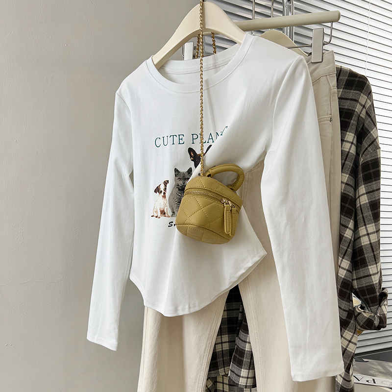 실제 가격 실제 촬영 #EUROPEAN은 슬림 초 이른 가을을 가진 여성을위한 긴팔 장장 티셔츠 새로운 세련된 짧은 짧은 탑 탑 속옷베이스 셔츠