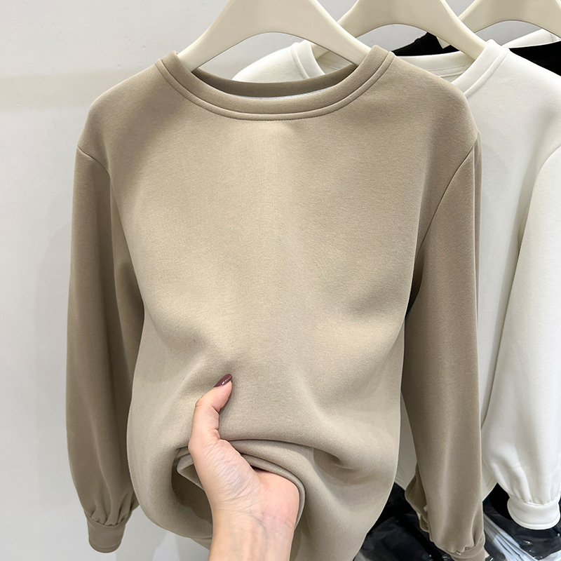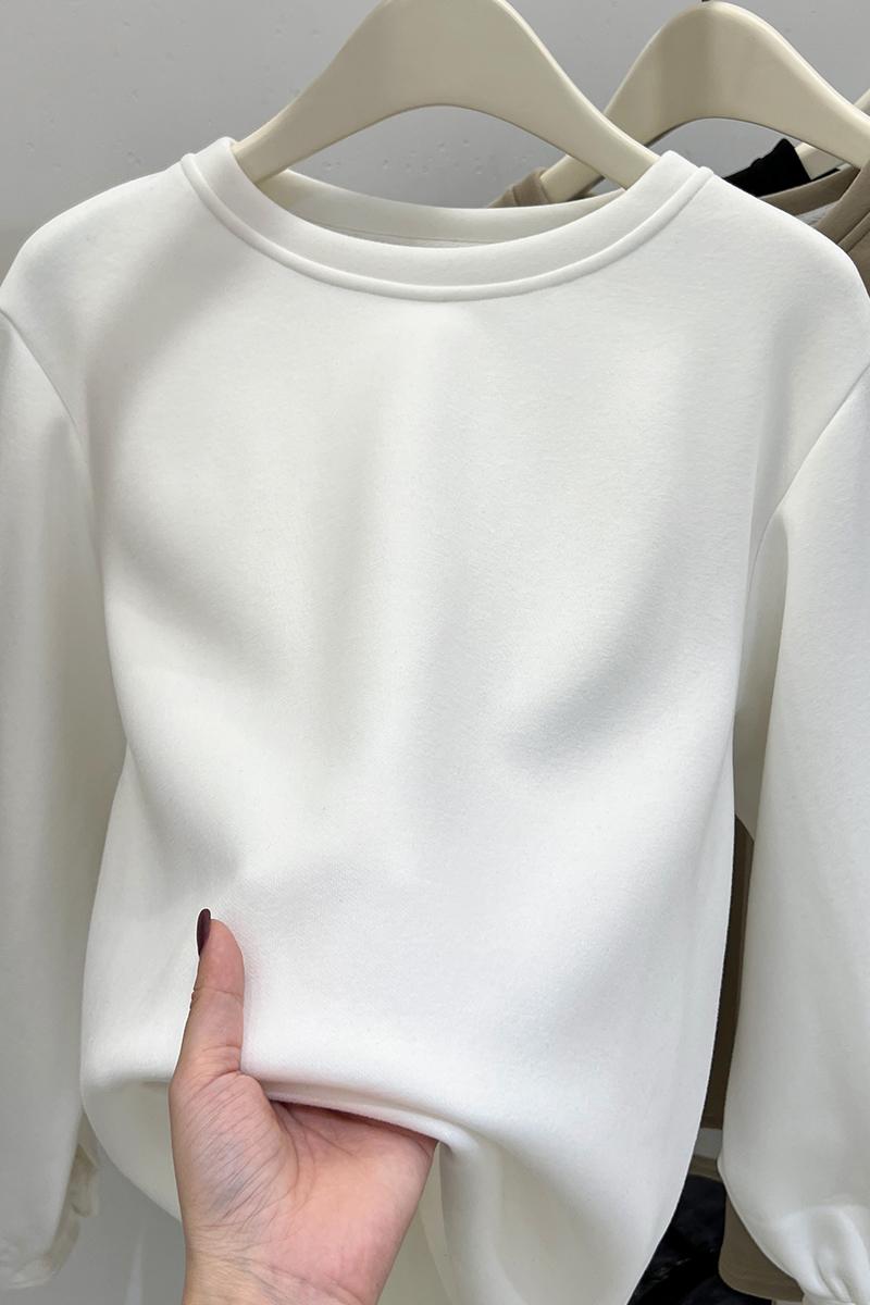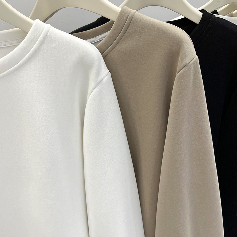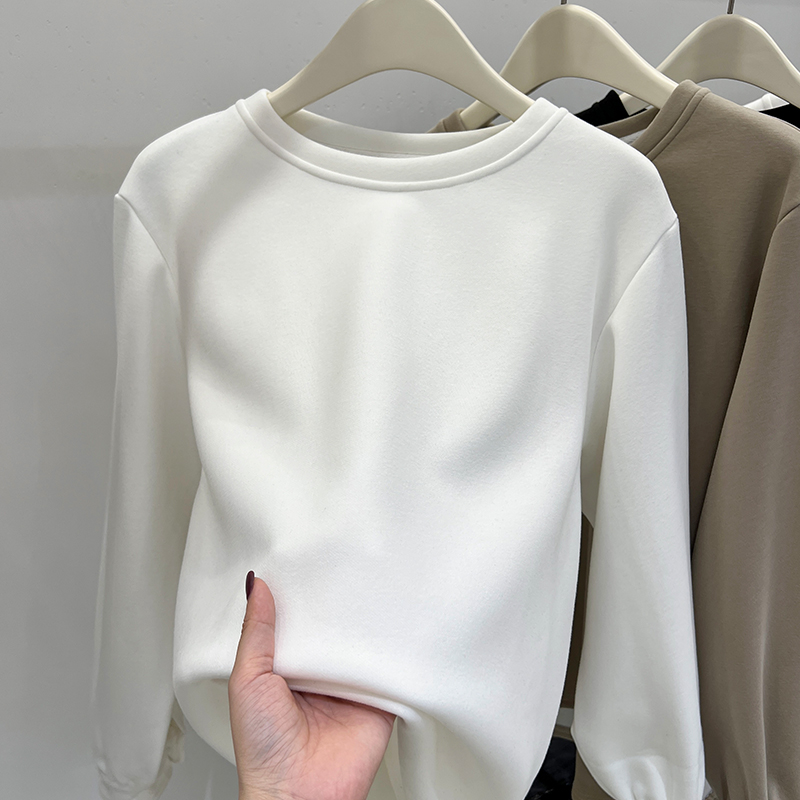 실제 가격의 실제 샷 #화이트 둥근 목과 속옷과 가을과 겨울 중간 길이의 느슨하고 털복숭이 탑을 가진 여성을위한 벨벳 긴팔 티셔츠