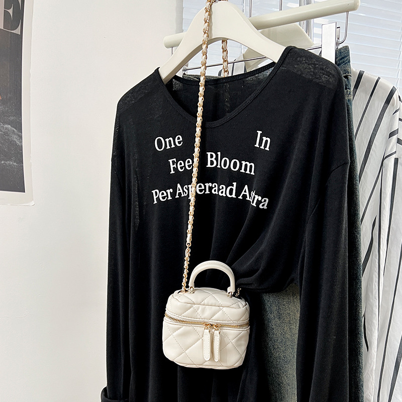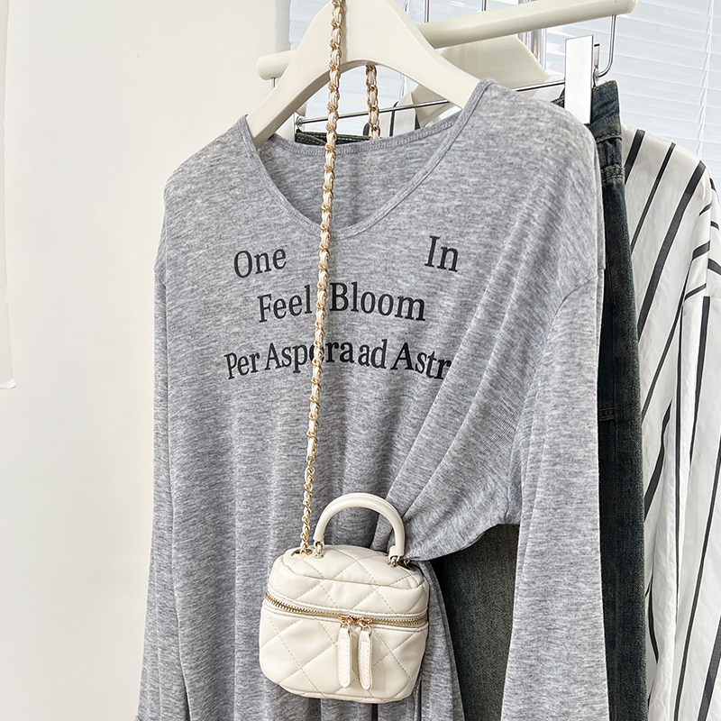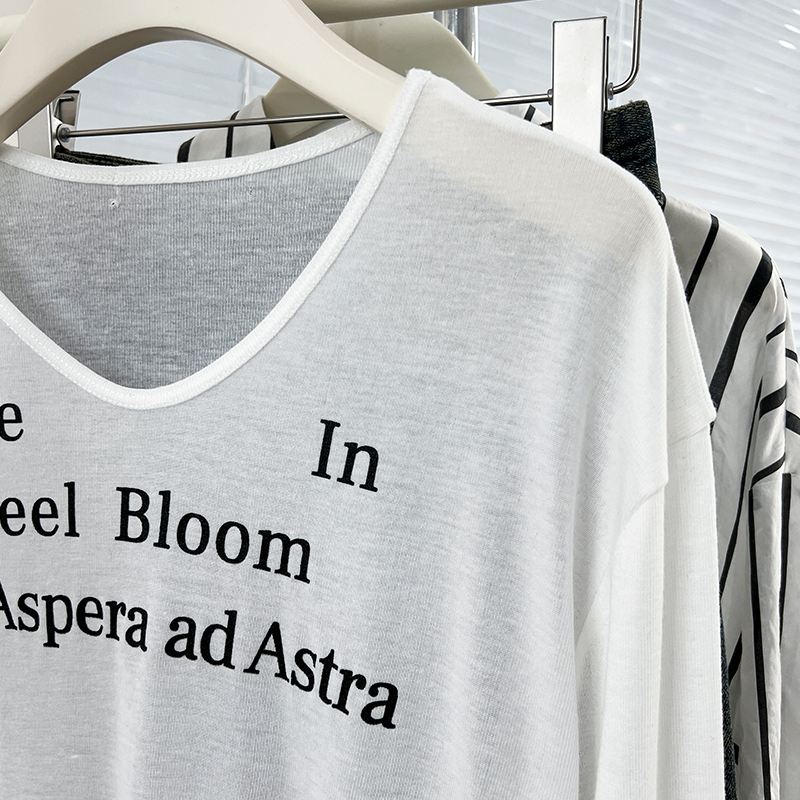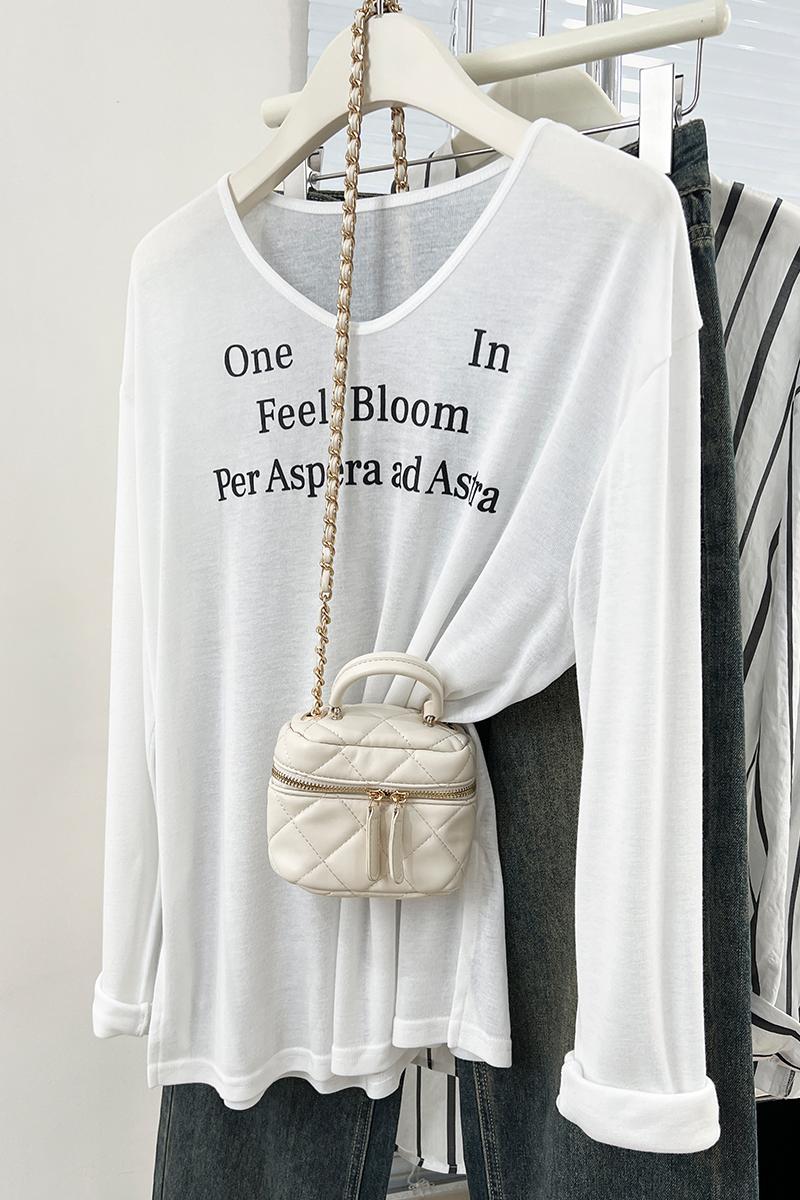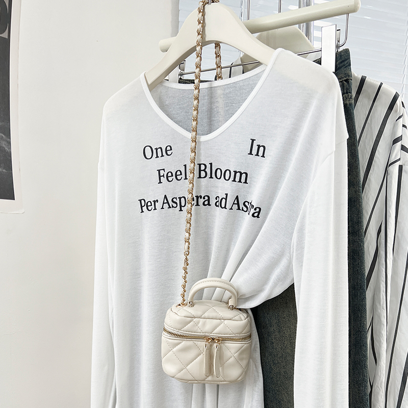진짜 가격 실제 샷 #화이트 레터 인쇄 얇은 선 스크린 v- 넥 롱팔 티셔츠 여름에 여성을위한 길이 느슨한 블라우스