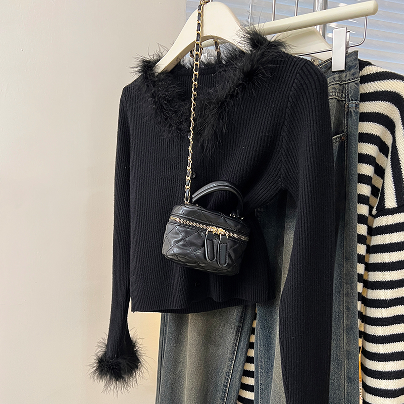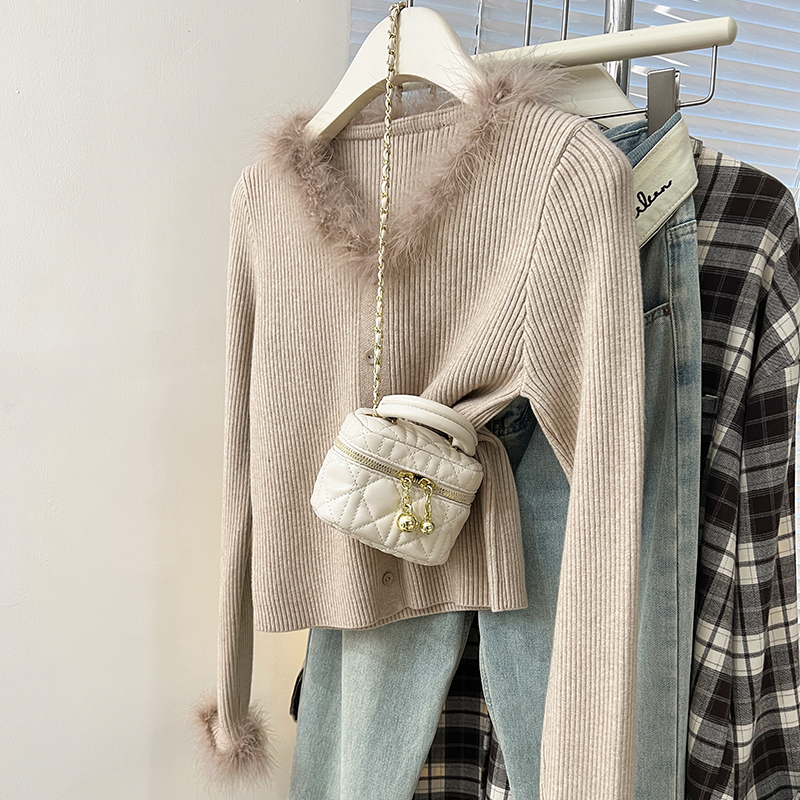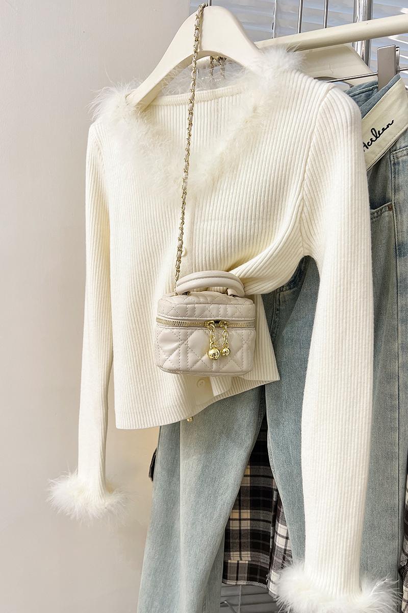 실제 가격 실제 샷 #furry v- 넥 긴팔 스웨터 가을과 겨울 고급 스웨터 속옷 탑의 여성을위한 긴팔 스웨터