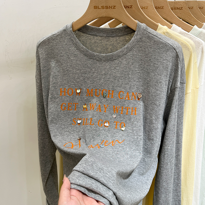 실제 가격 실제 샷 #Gray 편지 인쇄 얇은 태양 보호 긴팔 티셔츠 여름 티셔츠 느슨한 블라우스 탑