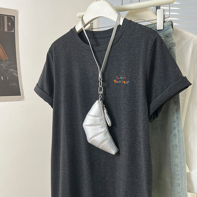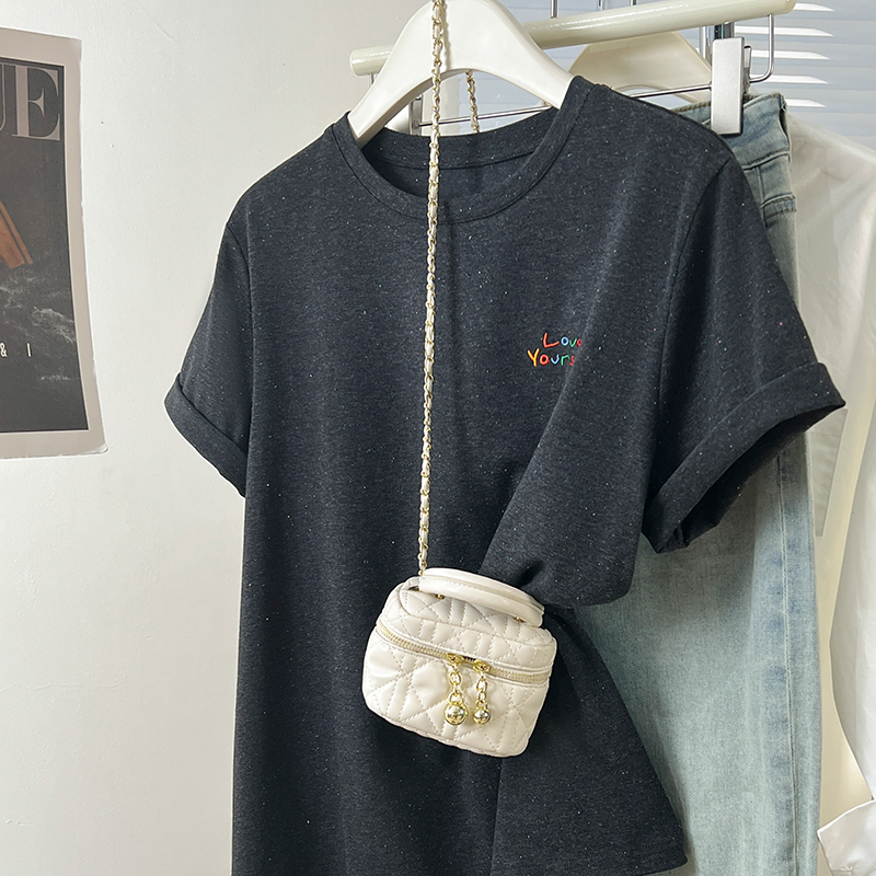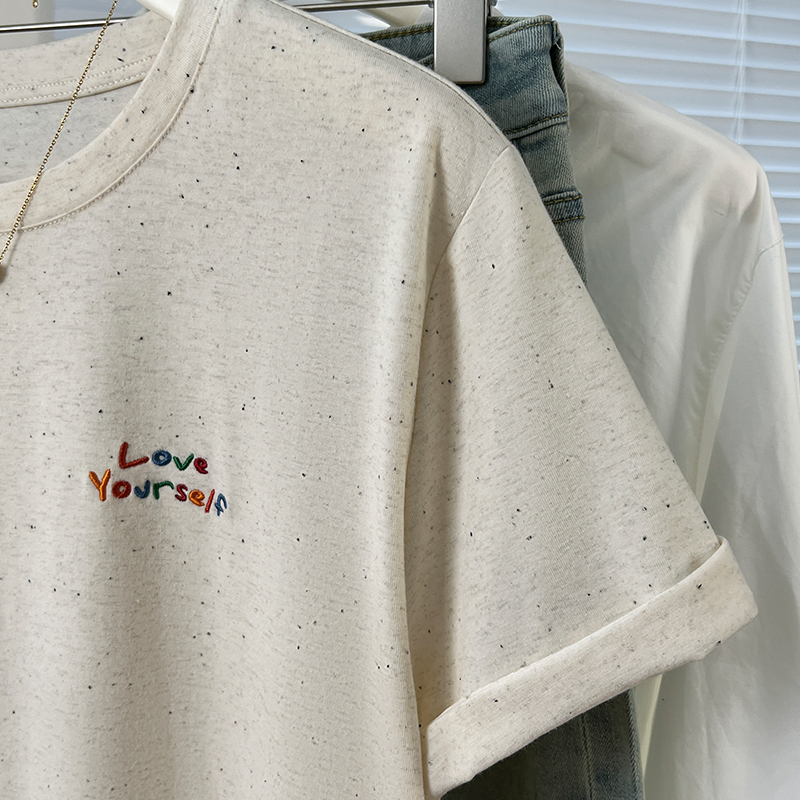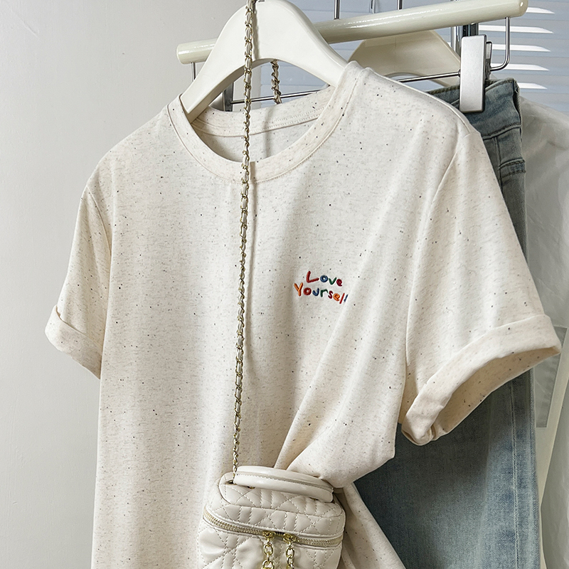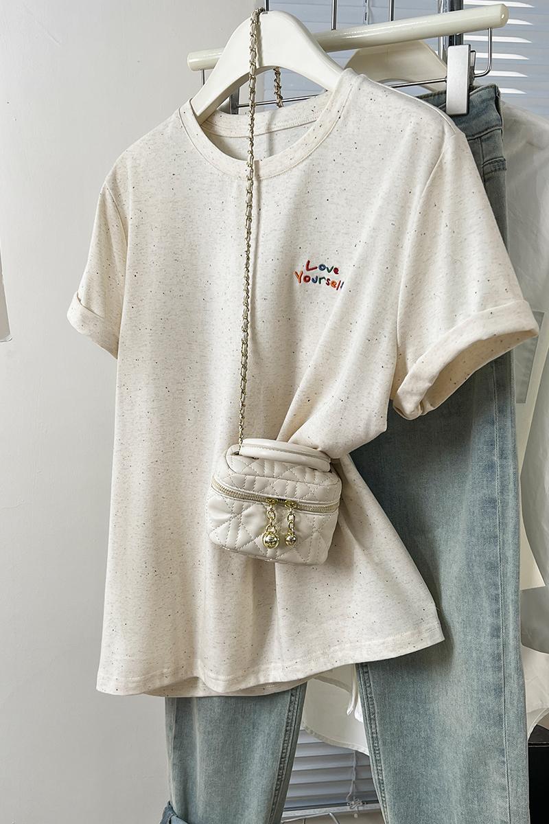 Real Price Real Shot #rice 살구 편지 자수 여름 여름 티셔츠 느슨