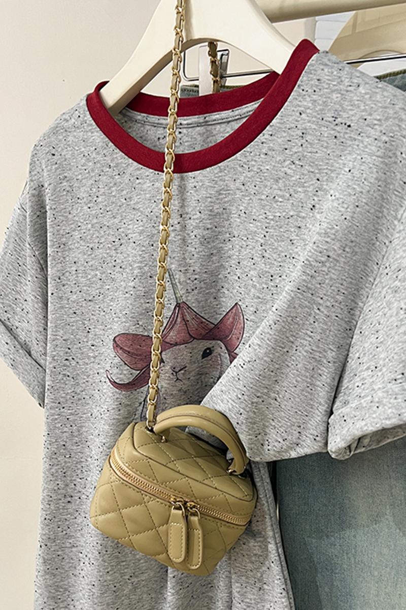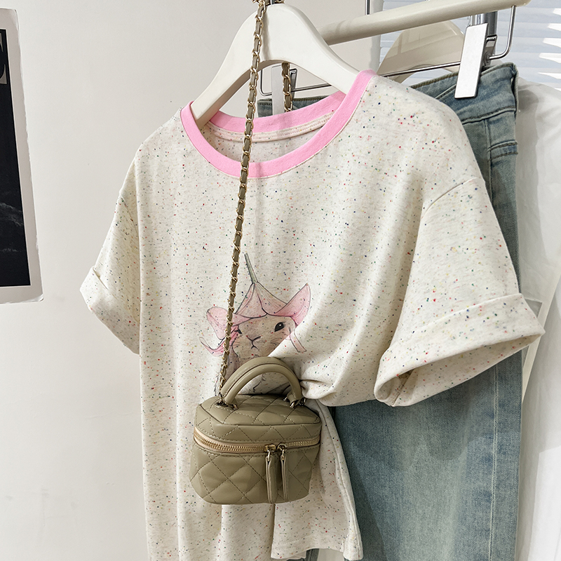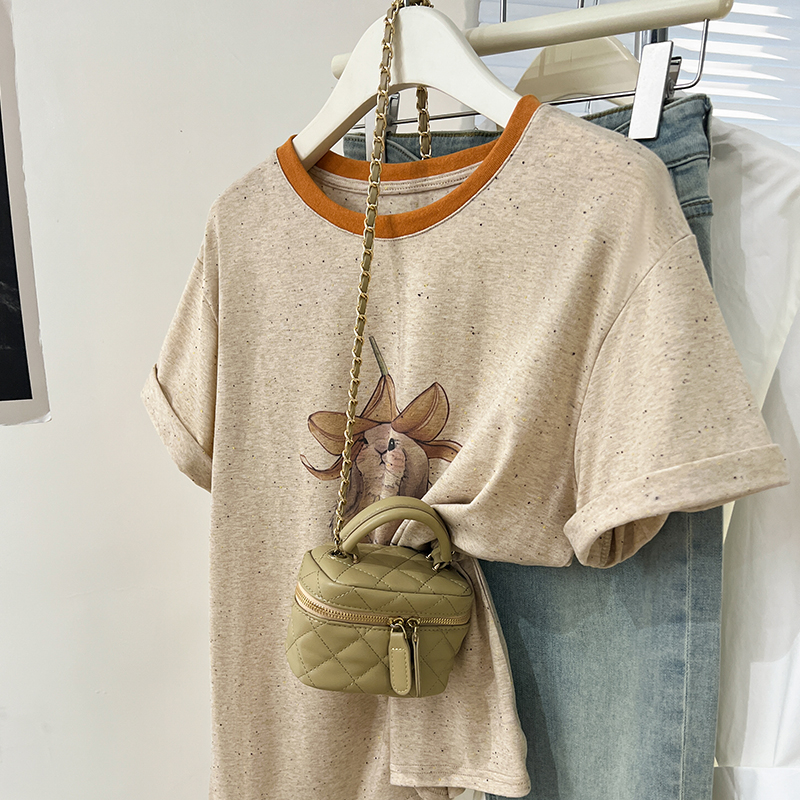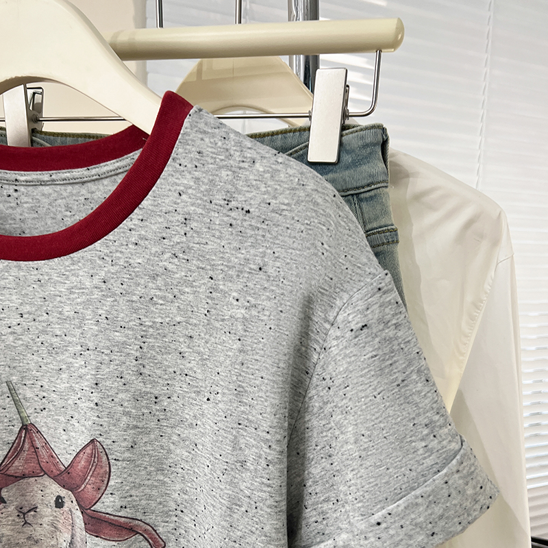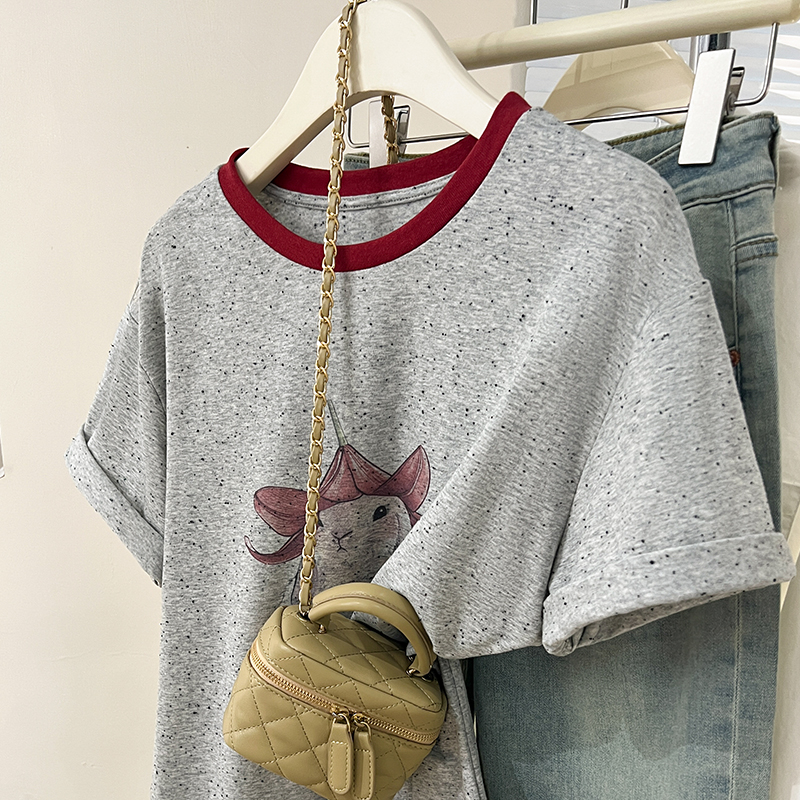 Real Price Real Shot #Grey American Retro Print Front Shoulding Short-Sleeved 티셔츠 여름에 여성을위한 느슨한 반팔 티셔츠 탑