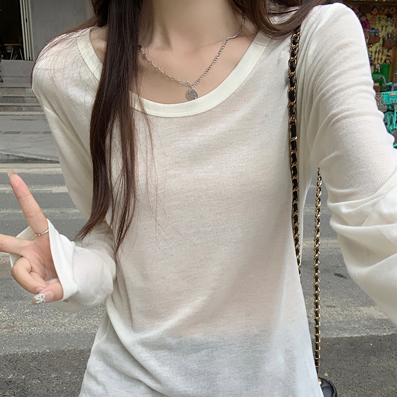 실제 가격 진짜 샷 #Thin Sunscreen v-neck 앞쪽 어깨 롱 슬리브 티셔츠 여름 틈새 시장에서 여성용 티셔츠 에어컨 셔츠 탑