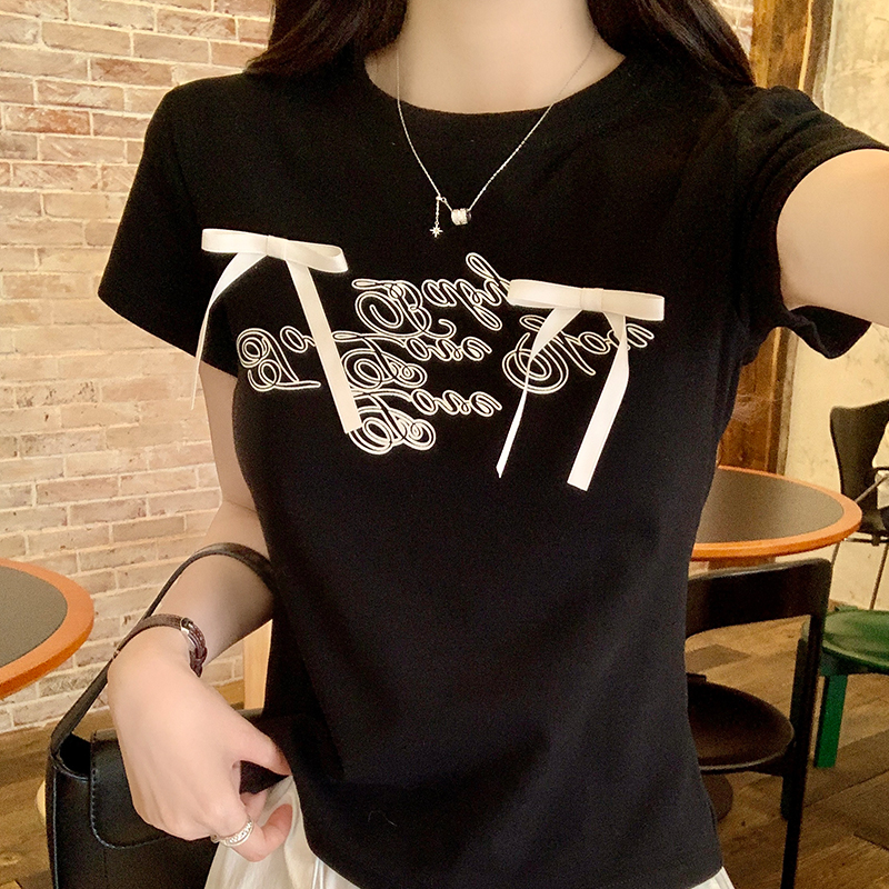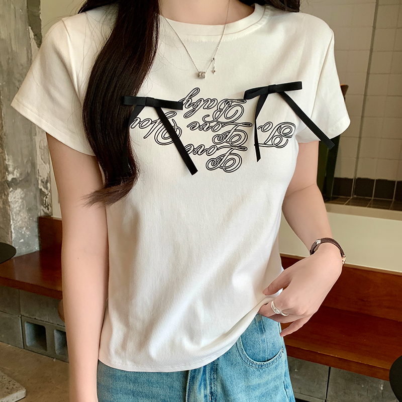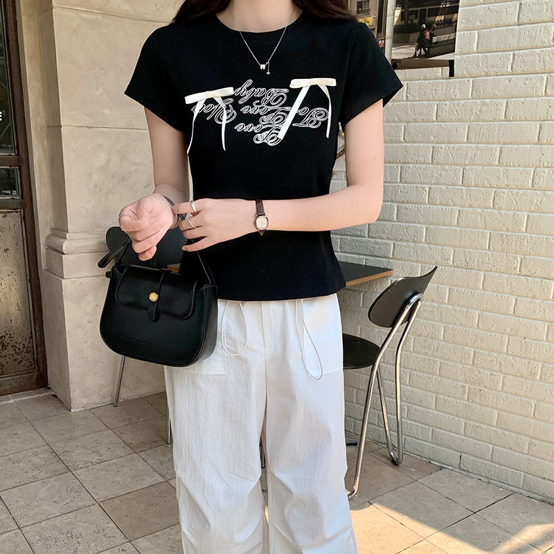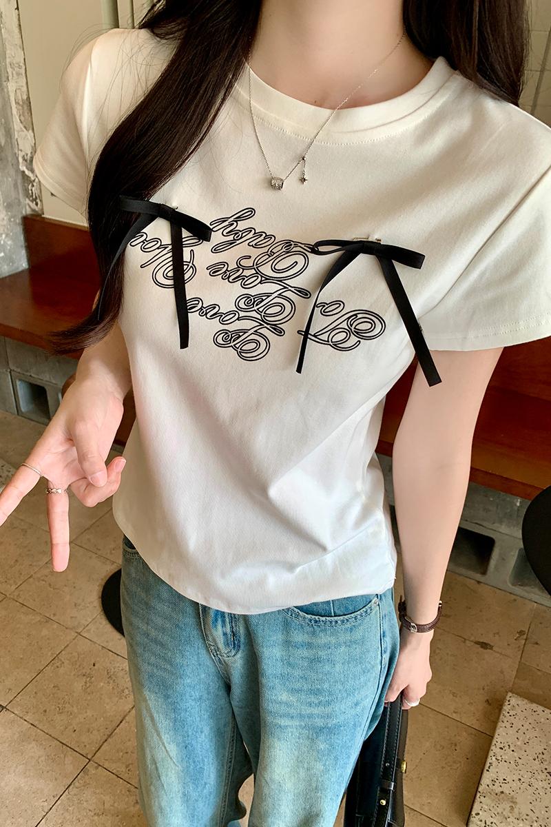 American Retro White Pure Cotton Front Should Short-Sleeved 티셔츠 여성 여름 티셔츠 Top New