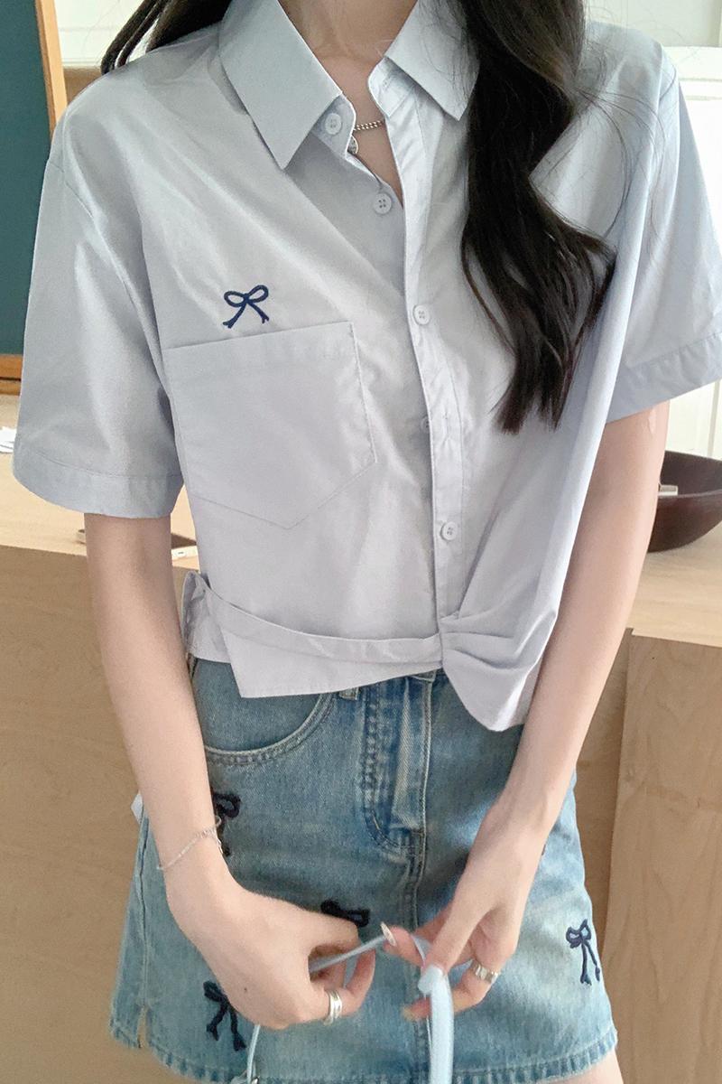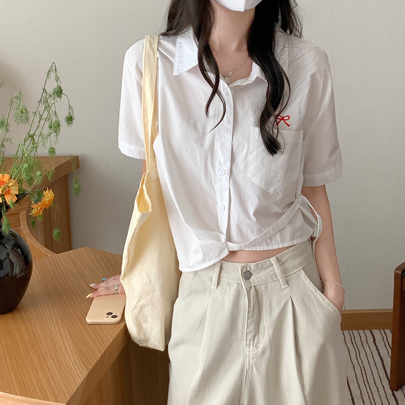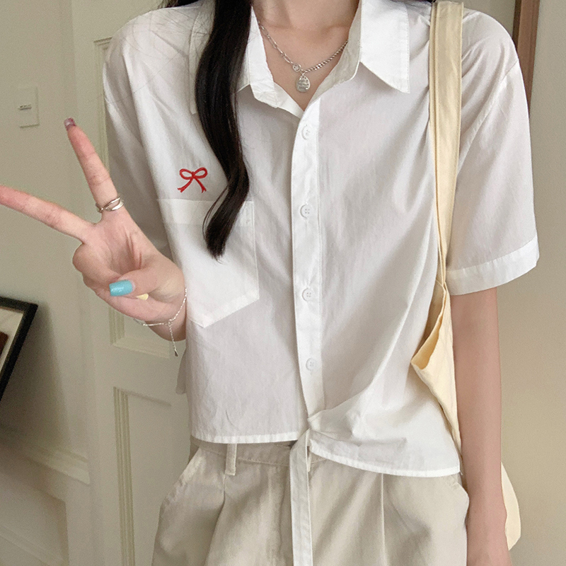 화이트 레이스 업 보우 짧은 슬리프 셔츠 여름에 여성을위한 새로운 셔츠 작은 탑
