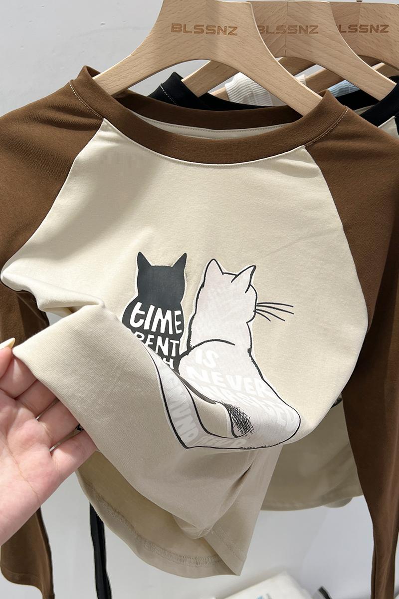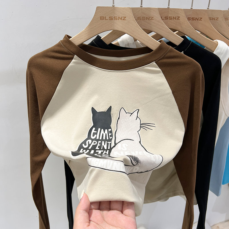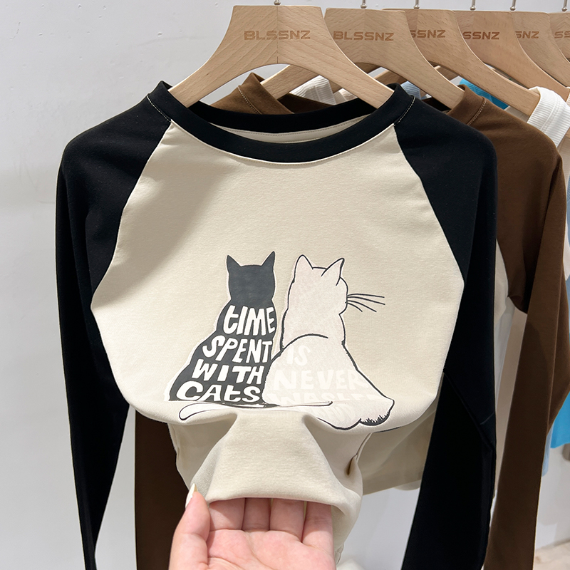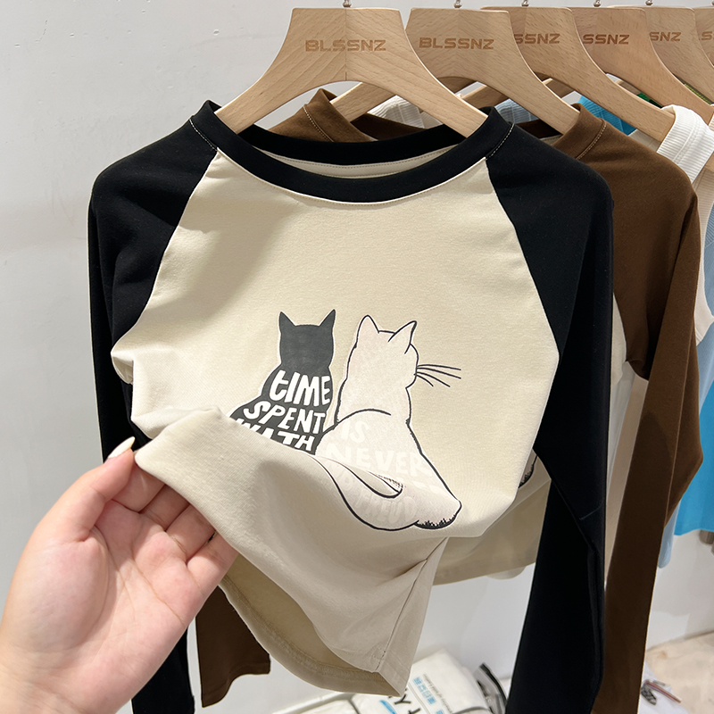 Real-Price Real Shot #American Retro Short Irregular Rag-Sleeved Long-Sleeved 티셔츠 여성 스프링베이스 셔츠 속옷